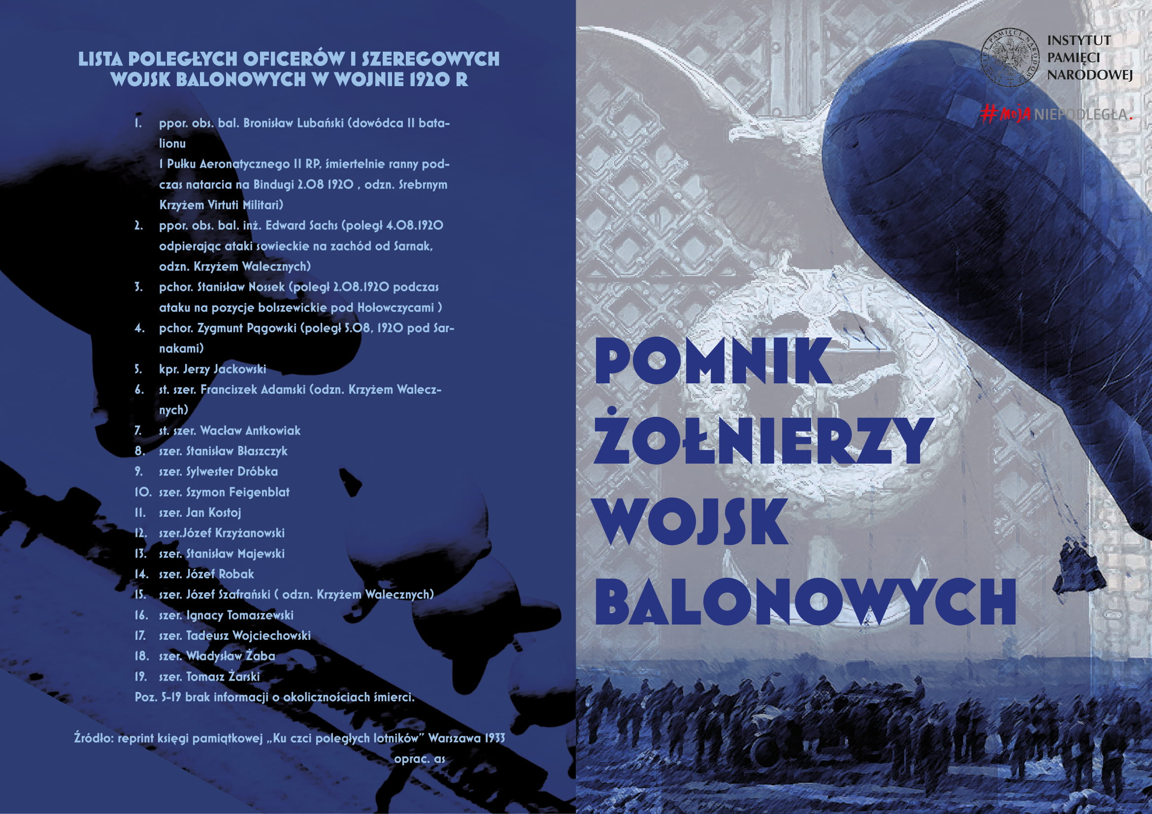 Dodatkowo OBUWiM IPN Gdańsk zrealizuje trzy inskrypcje na pomniku, zawierające informacje o zniszczeniu monumentu przez Niemców we wrześniu 1939 roku, wraz z nazwiskami poległych żołnierzy wojsk balonowych w czasie wojny polsko-bolszewickiej.