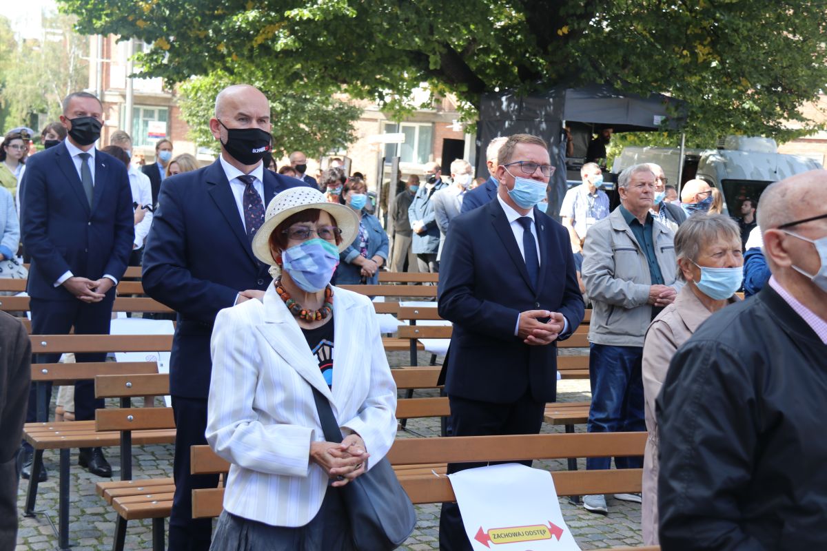 Kwiaty pod pamiątkową tablicą złożyła delegacja Instytutu Pamięci Narodowej, na czele z dyrektorem Biura Edukacji Narodowej Adamem Hlebowiczem i naczelnikiem Oddziałowego Biura Edukacji Narodowej Krzysztofem Drażbą.