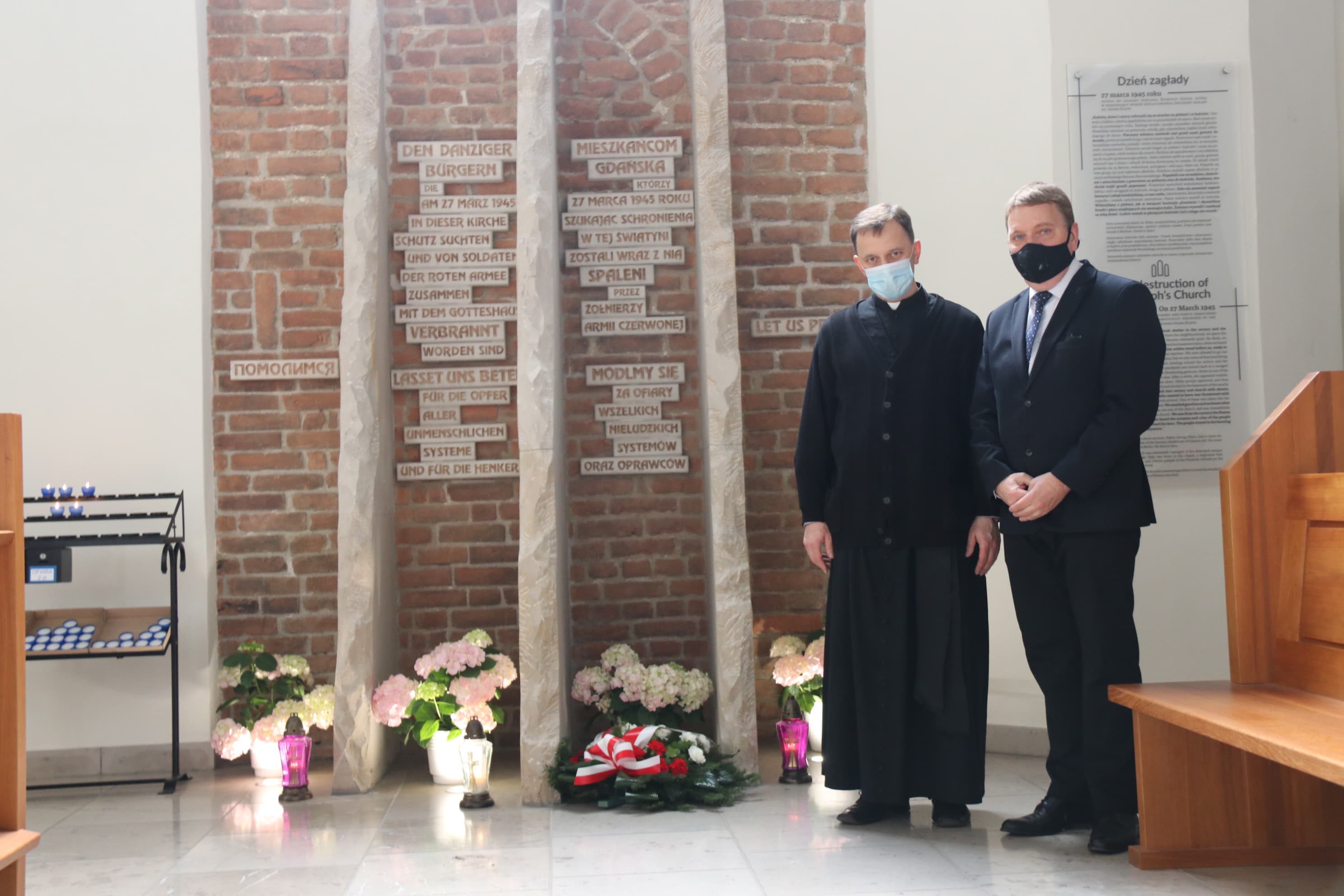 Wieniec złożyliśmy także w Kościele pw. św. Józefa – przy Sanktuarium Ofiar Nieludzkich Systemów w Gdańsku, gdzie pod koniec marca 1945 roku żołnierze Armii Czerwonej spalili żywcem co najmniej kilkudziesięciu cywili. W tej części uroczystości wziął udział rektor kościoła, dyrektor oblackiego centrum edukacji i kultury o. Marcin Szafors OMIZe względu na obowiązujące obostrzenia sanitarne wydarzenie odbyło się bez udziału publiczności.
