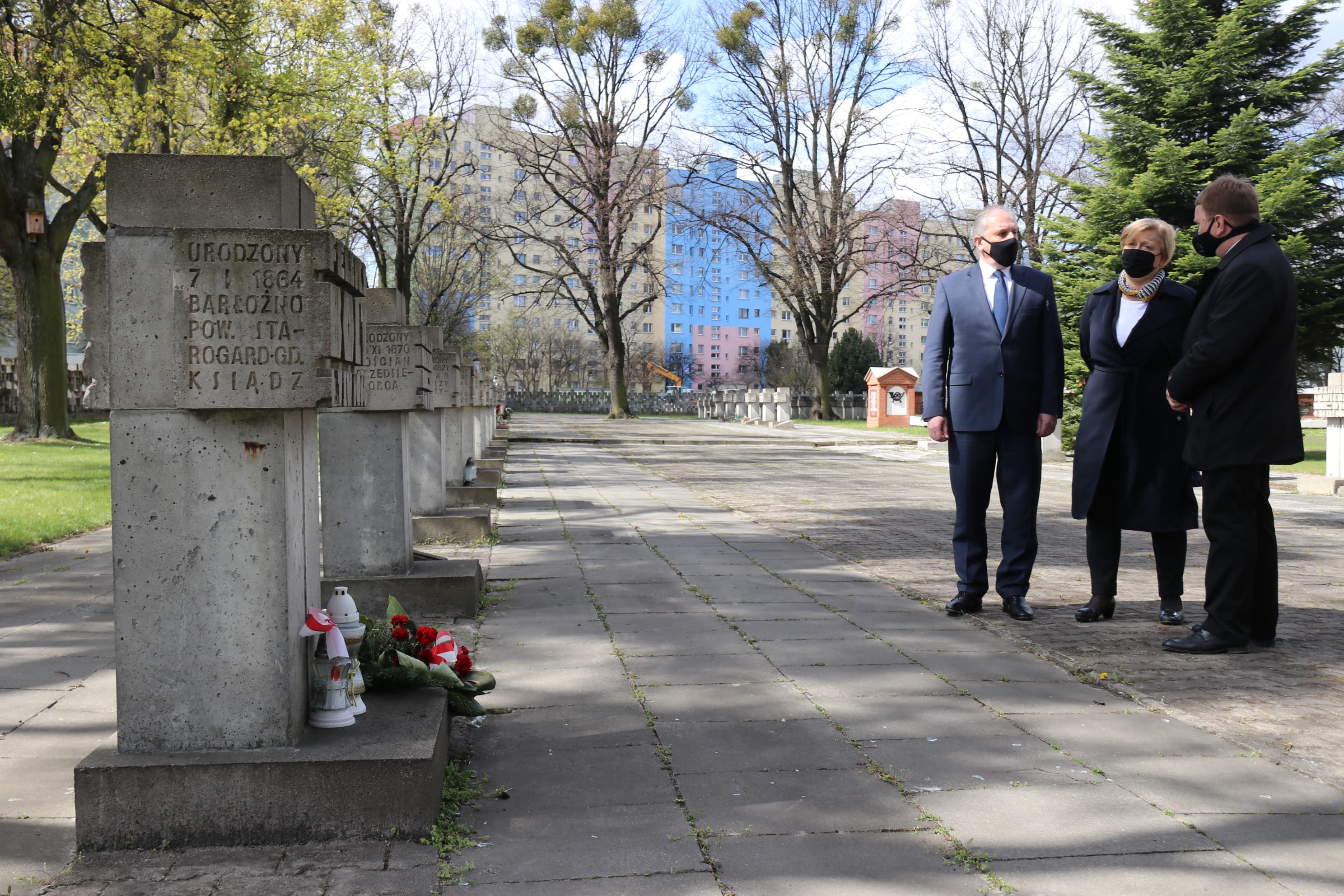 Następnie udaliśmy się na Cmentarz Ofiar Hitleryzmu w Gdańsku na Zaspie. Kwiaty w centralnym punkcie cmentarza złożyła delegacja Instytutu Pamięci Narodowej, na czele z prof. Mirosławem Golonem oraz naczelnik Oddziałowego Biura Upamiętniania Walk i Męczeństwa Katarzyna Lisiecka. W uroczystości uczestniczył także Wojewoda Pomorski Dariusz Drelich oraz europosłanka Anna Fotyga.