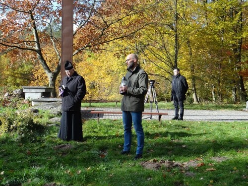 W imieniu Oddziału IPN w Gdańsku znicz pamięci przy pomniku w Lesie Szpęgawskim zapalił przedstawiciel Oddziałowego Biura Upamiętniania Walk i Męczeństwa.