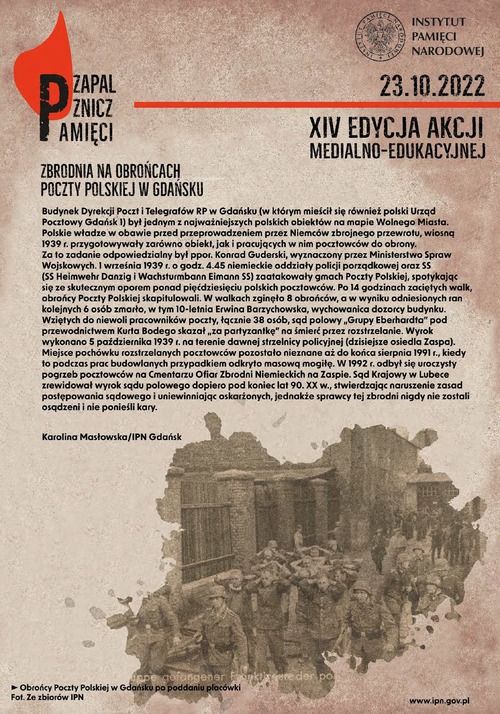 Zapal znicz pamięci w miejscach zbrodni dokonanych przez Niemców w ramach operacji „Tannenberg” i „politycznego oczyszczania gruntu” w pierwszych miesiącach II wojny światowej. Uczcij pamięć przedstawicieli polskich warstw przywódczych, którzy zostali zamordowani na terenach II RP wcielonych w 1939 r. do III Rzeszy: w Wielkopolsce, regionie łódzkim, na Pomorzu Gdańskim, Kujawach i Górnym Śląsku.