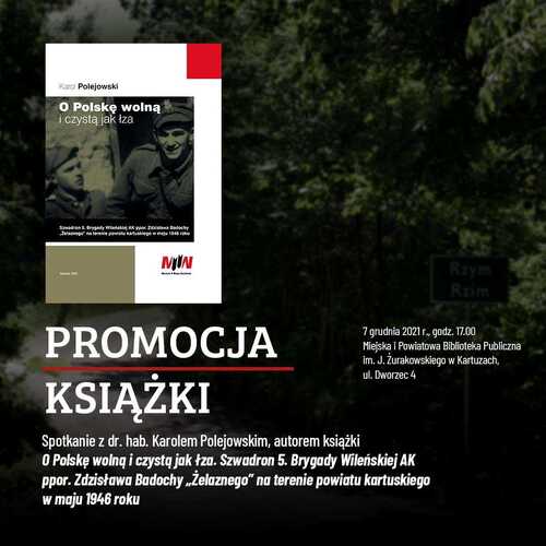 W Muzeum II Wojny Światowej w Gdańsku 4 listopada, w ramach cyklu „Spotkania z historią”, odbyła się promocja książki zastępcy prezesa IPN dr hab. Karola Polejowskiego pt. „O Polskę wolną i czystą jak łza. Szwadron 5. Brygady Wileńskiej AK ppor. Zdzisława Badochy „Żelaznego” na terenie powiatu kartuskiego w maju 1946 roku”.