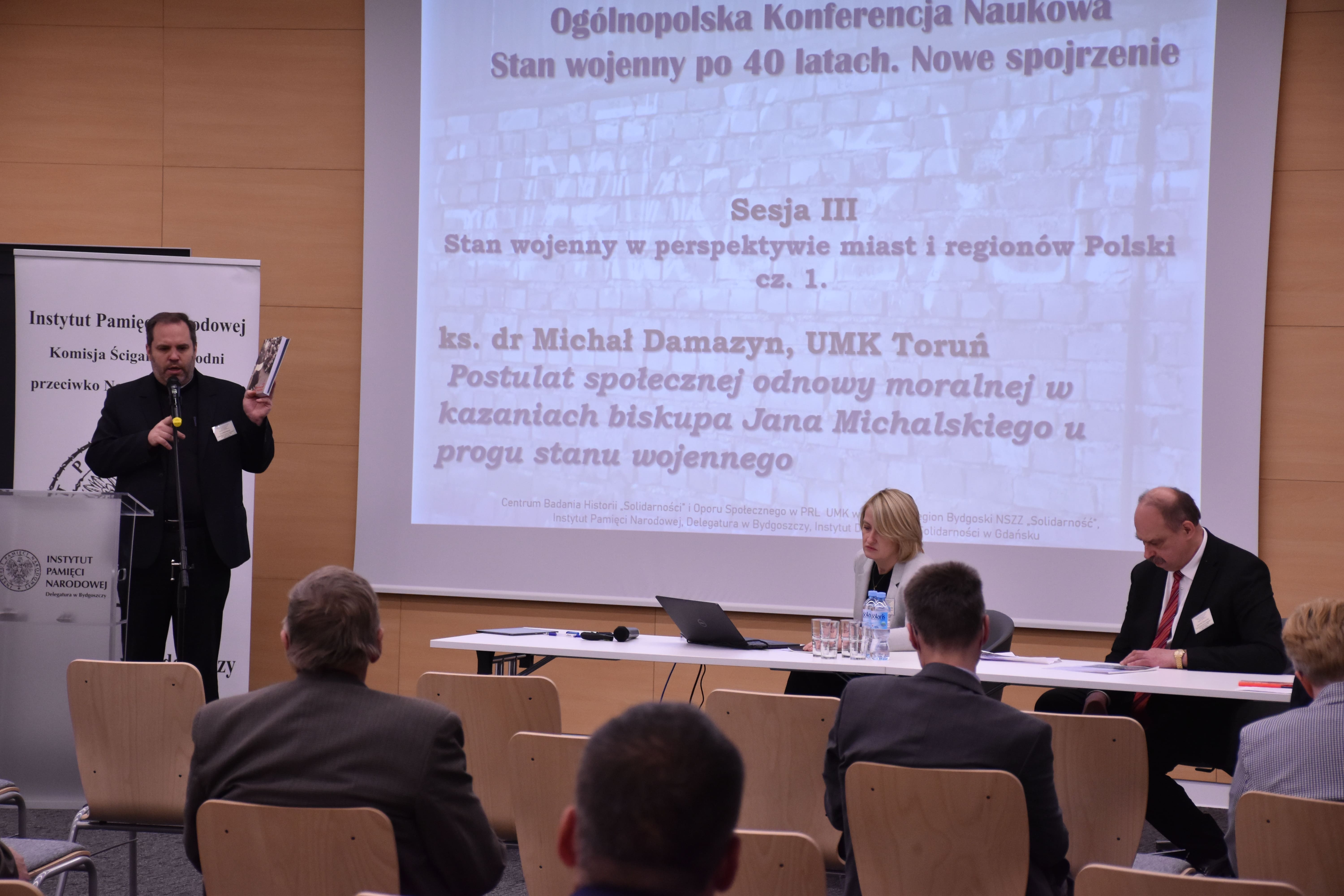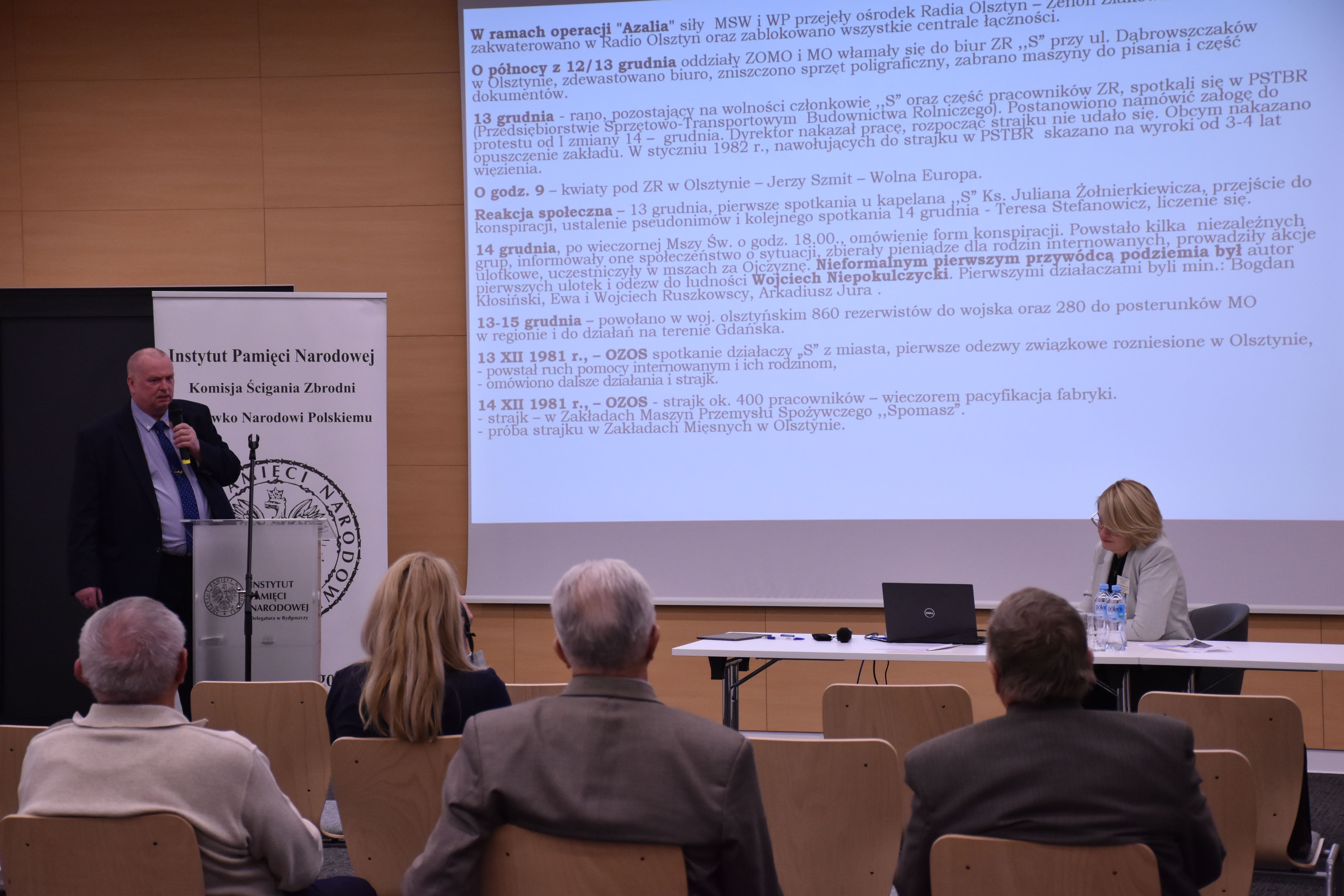 W siedzibie bydgoskiej delegatury Instytutu Pamięci Narodowej trwa konferencja współorganizowana przez Centrum Badania Historii "Solidarności" i Oporu Społecznego w PRL Uniwersytetu Mikołaja Kopernika- "Stan wojenny po czterdziestu latach. Nowe spojrzenie".
