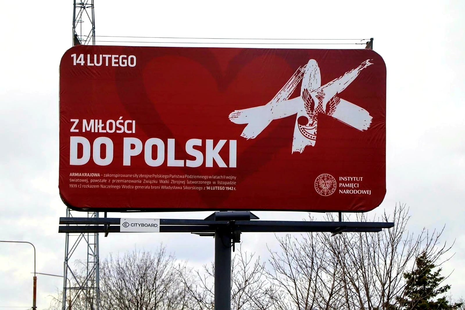 W 80. rocznicę przekształcenia Związku Walki Zbrojnej w Armię Krajową z inicjatywy Instytutu Pamięci Narodowej w całej Polsce pojawiają się wielkopowierzchniowe billboardy z hasłem „Z miłości do Polski. Armia Krajowa”.