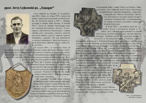 Jerzy Lejkowski ps. Szpagat” (ur. 15 października 1923 r. Wilno, zm. 6 lipca 1991 r. Gdańsk) był jednym z pierwszych partyzantów na Wileńszczyźnie. Do konspiracji wstąpił w 1939 r., składając przysięgę w Związku Walki Zbrojnej. W sierpniu 1943 r. wszedł do oddziału dowodzonego przez por. Antoniego Burzyńskiego „Kmicica”. Po podstępnym zamordowaniu Burzyńskiego i rozbiciu oddziału przez partyzantkę sowiecką, komendę nad resztą żołnierzy „Kmicica” objął mjr Zygmunt Szendzielarz „Łupaszko”. Pod jego dowództwem w szeregach późniejszej 5. Wileńskiej Brygady Armii Krajowej Jerzy Lejkowski walczył o wolną Polskę do 1946 r.