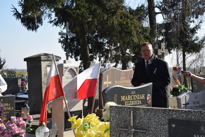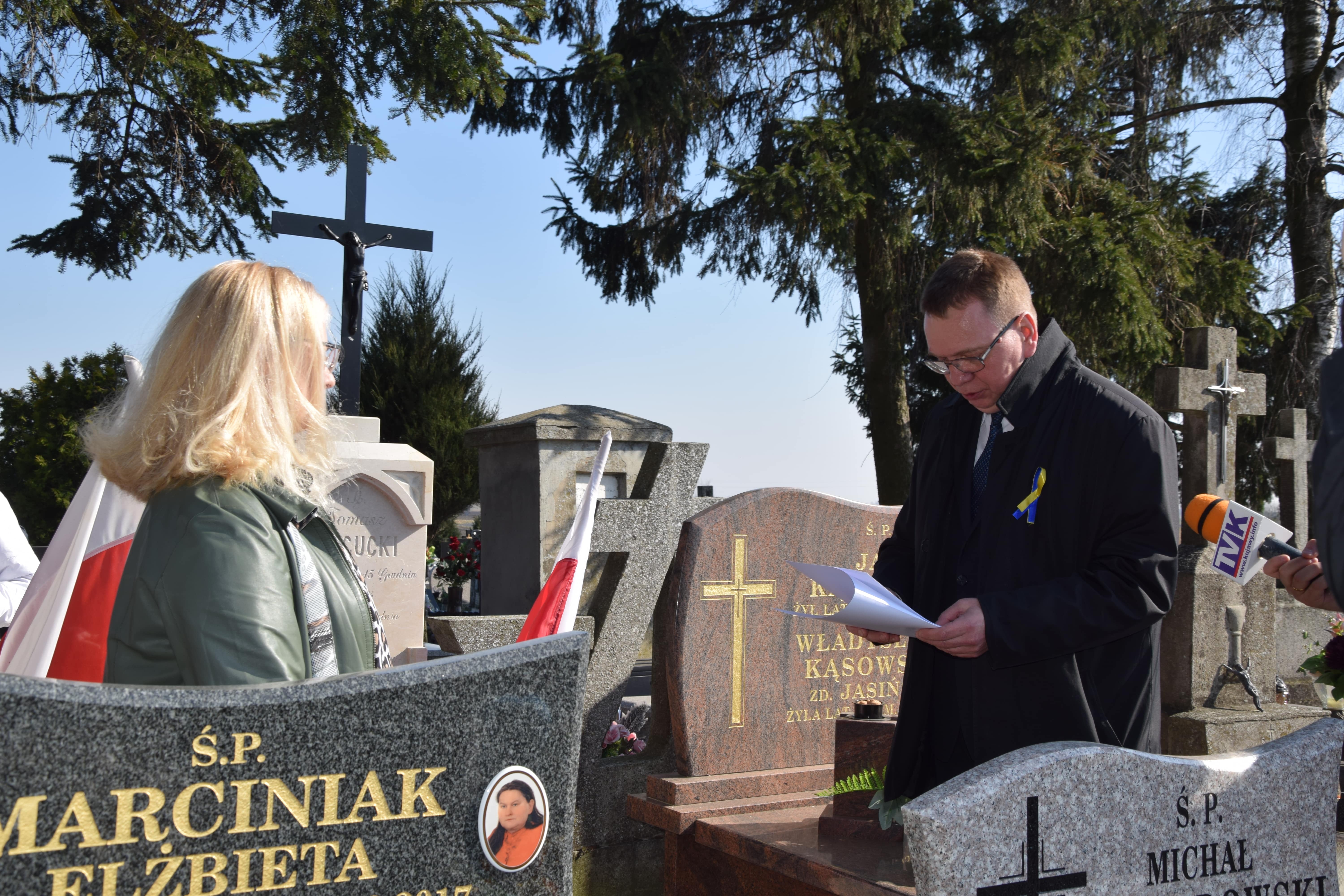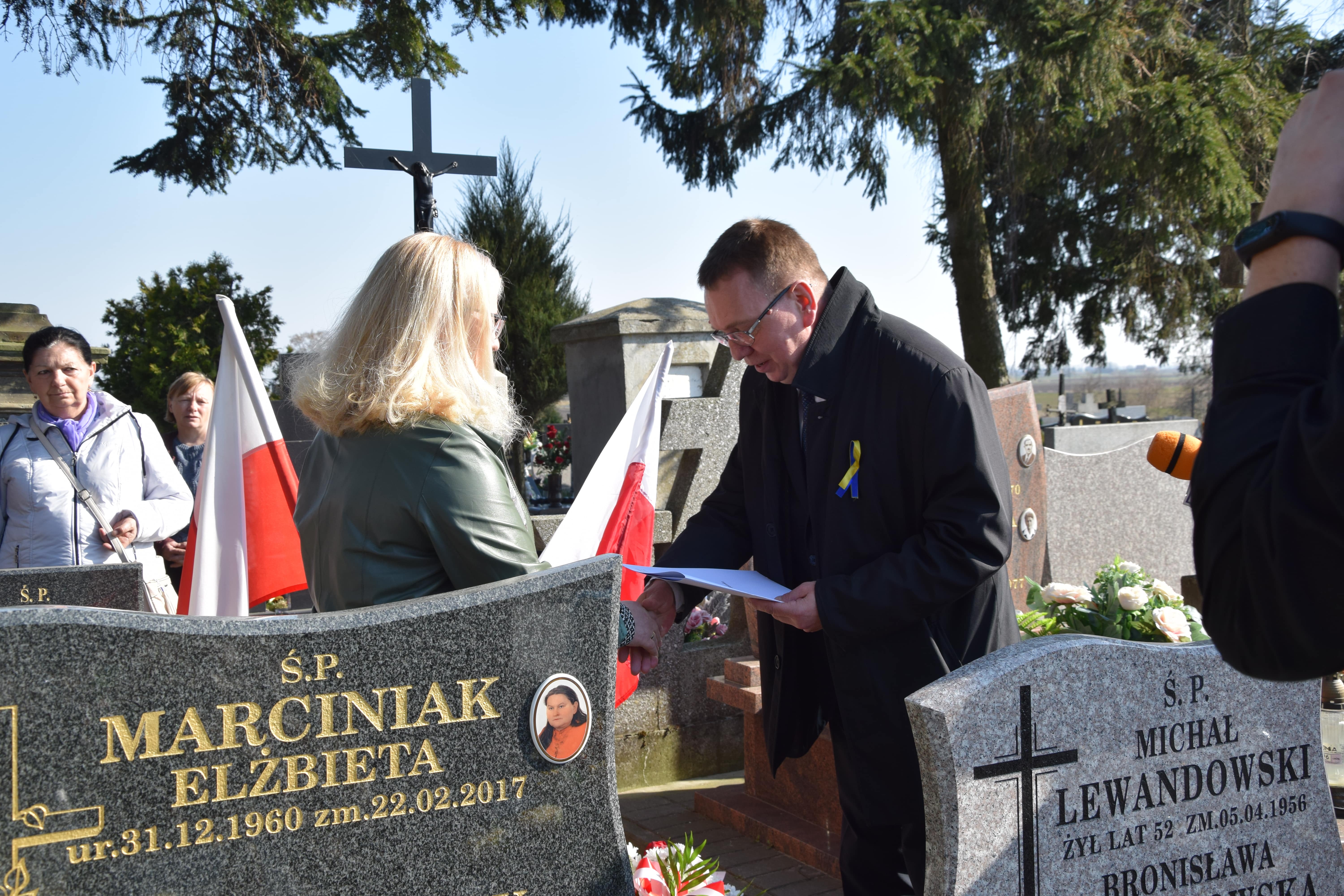 Podczas uroczystości prof. dr hab. Mirosław Golon, Zastępca Dyrektora Oddziału IPN w Gdańsku wręczył p. Barbarze Wysockiej-Czajce, dyrektor Szkoły Podstawowej im. Tadeusza Kościuszki w Zgłowiączce akt nadania opieki nad grobem weterana.