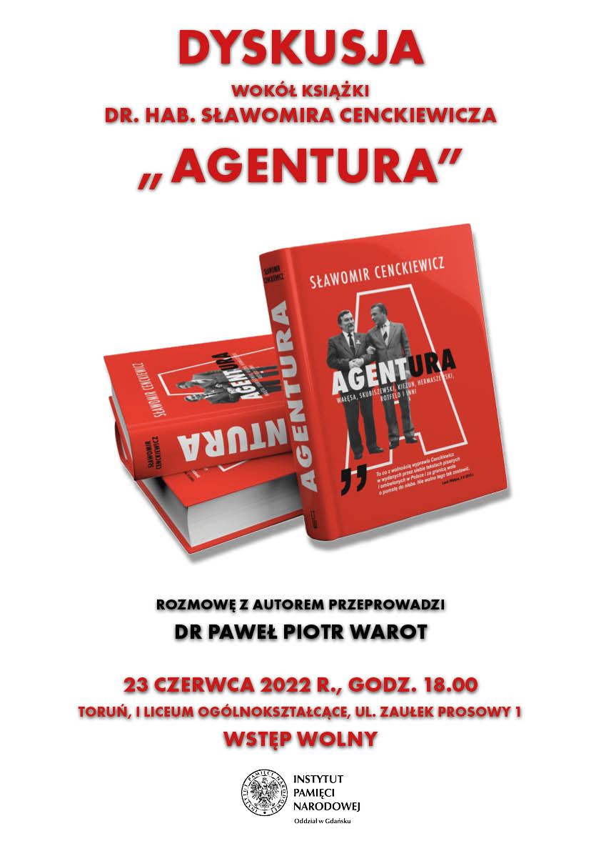 Serdecznie zapraszamy Państwa na dyskusję wokół najnowszej książki prof. Sławomira Cenckiewicza „Agentura”. Rozmowę z autorem przeprowadzi dr Paweł Piotr Warot, dyrektor Oddziału IPN w Gdańsku.