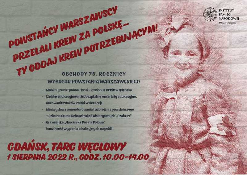 W związku ze zbliżającą się 78. rocznicą wybuchu Powstania Warszawskiego zapraszamy do udziału w obchodach 1 sierpnia 2022 r. na Targu Węglowym w Gdańsku. Wspólnie oddajmy cześć Uczestnikom największej operacji militarnej stoczonej podczas II wojny światowej przez Armię Krajową przeciwko niemieckiemu okupantowi.