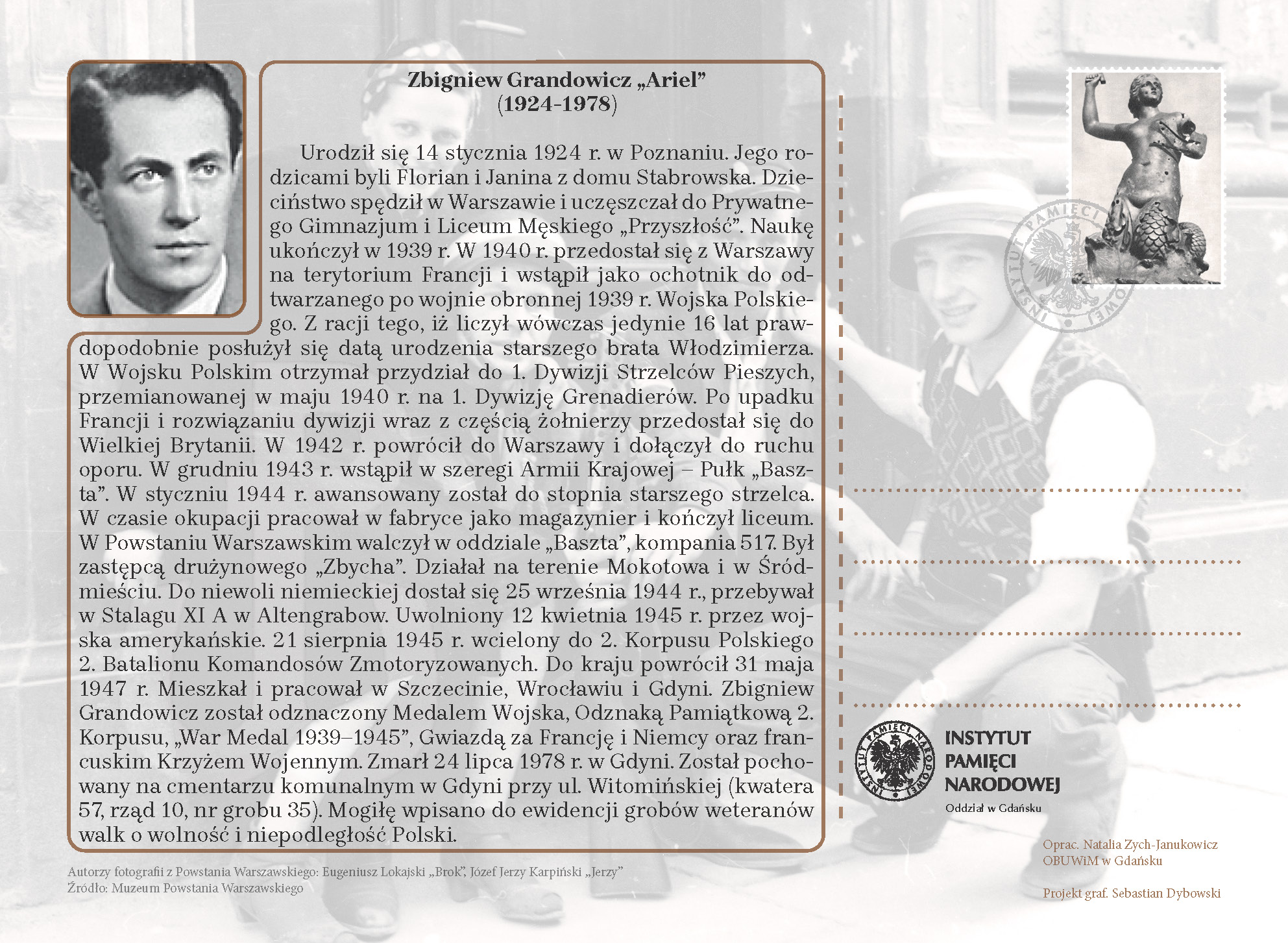 Biogramy powstańców zostały opisane na okolicznościowych pocztówkach wydanych przez biuro upamiętniania IPN w Gdańsku. Kartki pocztowe będą się ukazywały cyklicznie przez 63 dni wspominając cały okres trwania heroicznej walki o wolność Warszawy i Polski. Poniżej prezentujemy pocztówki.