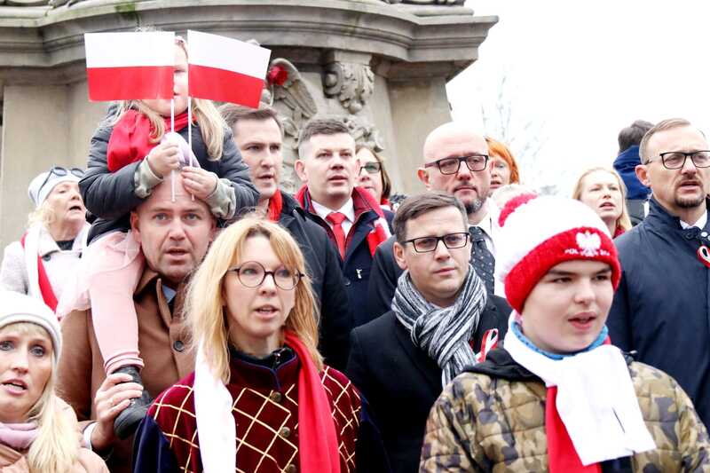 Uczestnicy parady powędrowali dalej ulicą Hucisko, kierując się na Targ Drzewny, gdzie pod pomnikiem króla Jana III Sobieskiego został złożony biało-czerwony wieniec kwiatów, a przemówienie okolicznościowe wygłosił prezes IPN dr Karol Nawrocki.