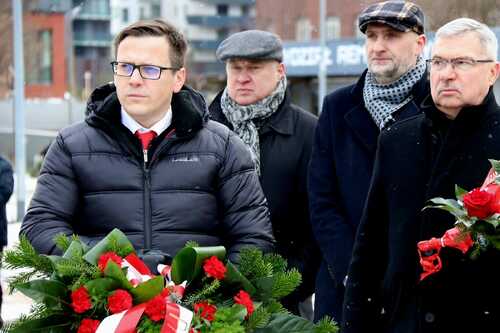 Uroczyste złożenie kwiatów i zapalenie zniczy pod pomnikiem Poległych Stoczniowców.