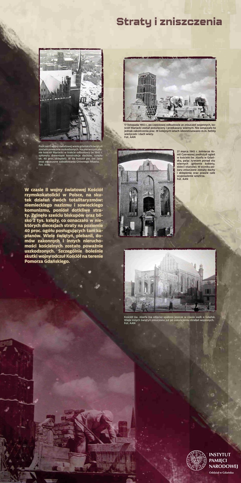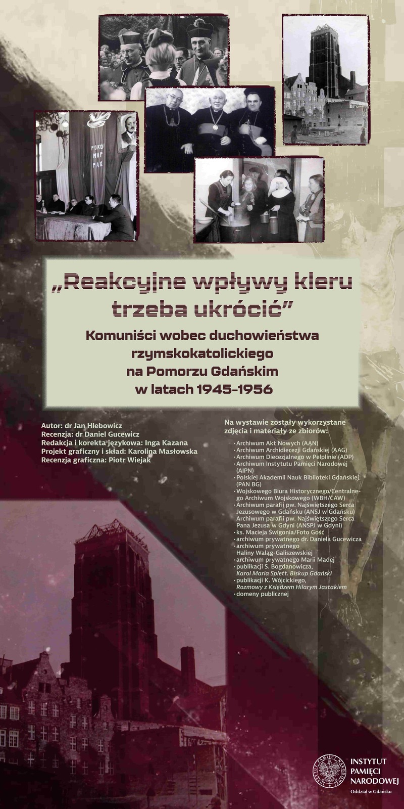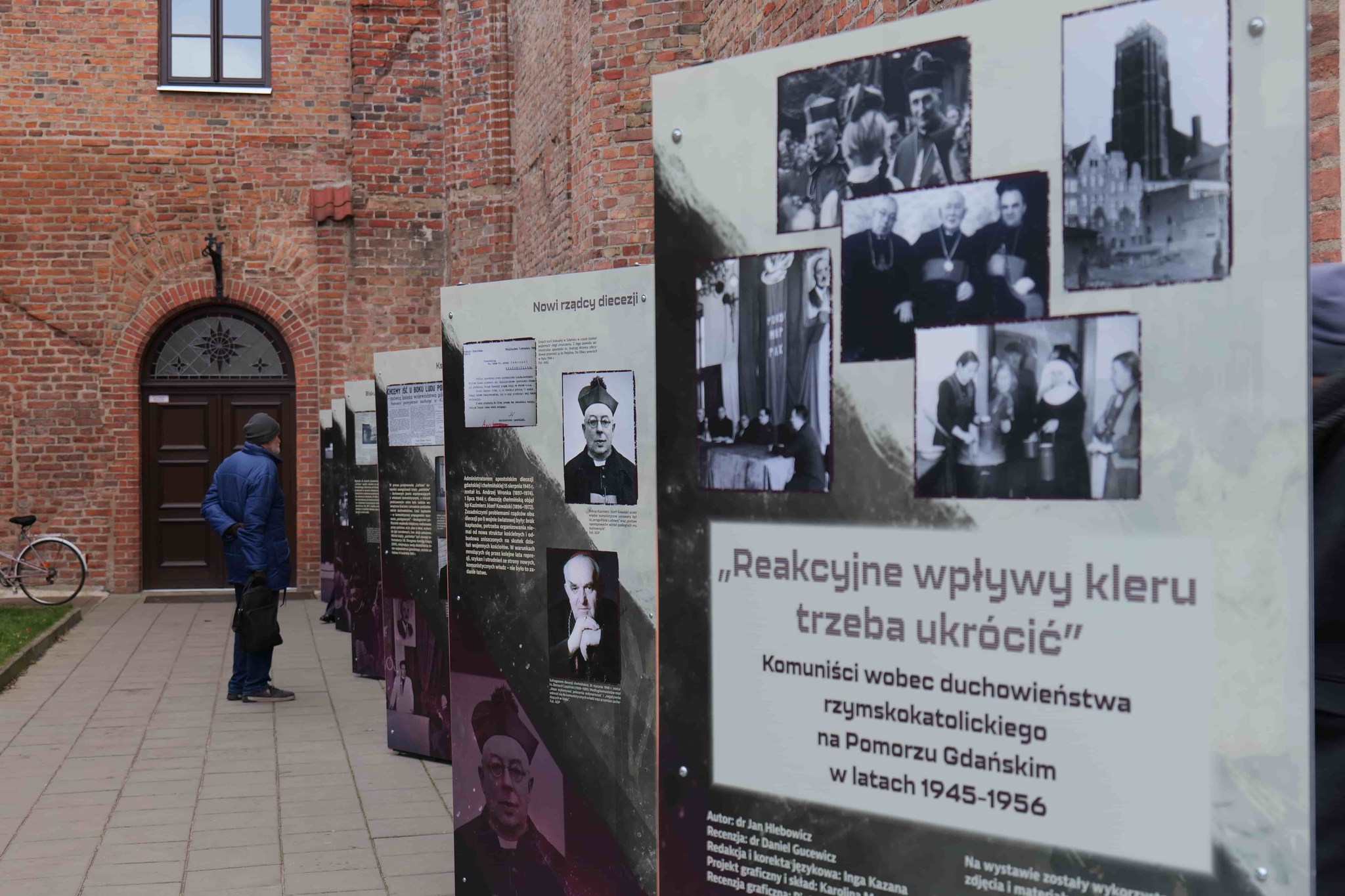 Autorem wystawy „«Reakcyjne wpływy kleru trzeba ukrócić». Komuniści wobec duchowieństwa rzymskokatolickiego na Pomorzu Gdańskim w latach 1945–1956” jest dr Jan Hlebowicz z Oddziałowego Biura Badań Historycznych IPN w Gdańsku, który oprowadził gości po wystawie. Prezentacja składa się z 18 paneli i będzie dostępna przez świątynią do końca grudnia br.