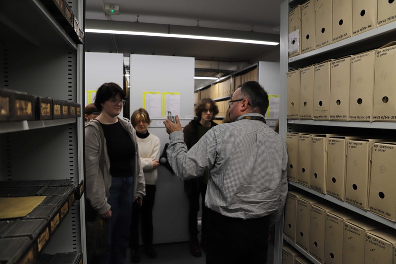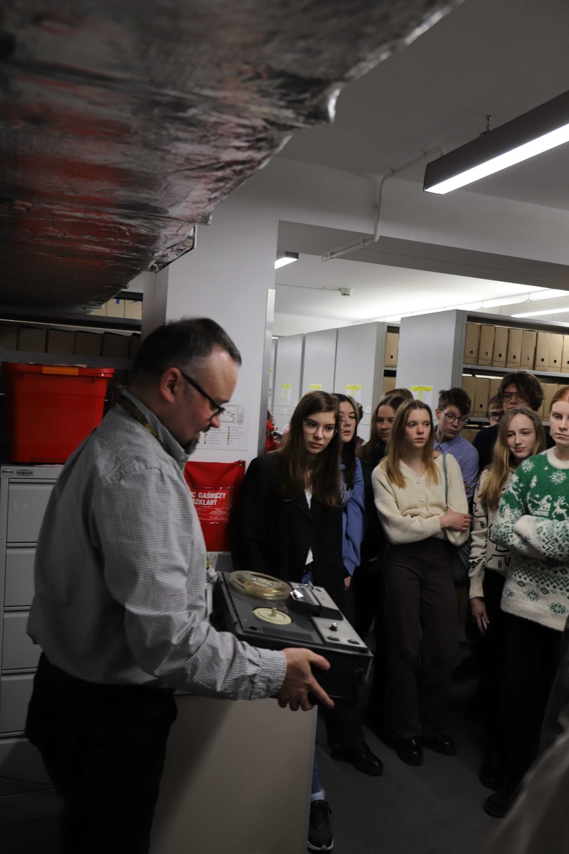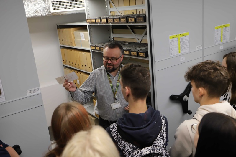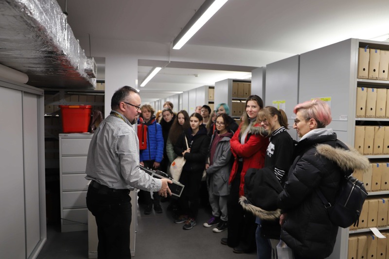 Pracownik Oddziałowego Archiwum Przemysław Namsołek poprowadził lekcję archiwalną połączoną z prezentacją multimedialną, podczas której opowiedział o zadaniach spoczywających na archiwistach i scharakteryzował poszczególne rodzaje dokumentów, zgromadzonych w zasobie Oddziału IPN w Gdańsku. Goście obejrzeli kopie wybranych akt z zasobu archiwalnego IPN w Gdańsku (m.in. akt operacyjnych, akt funkcjonariusza SB, teczki pracy tajnego współpracownika, akt paszportowych i akt Wojskowego Sądu Rejonowego w Gdańsku dotyczących skazania na karę śmierci Danuty Siedzikówny ps. „Inka” i Feliksa Selmanowicza ps. „Zagończyk”). Na koniec uczestnicy spotkania zwiedzili magazyn archiwalny, gdzie zapoznali się z warunkami przechowywania materiałów zgromadzonych w zasobie Oddziału IPN w Gdańsku.