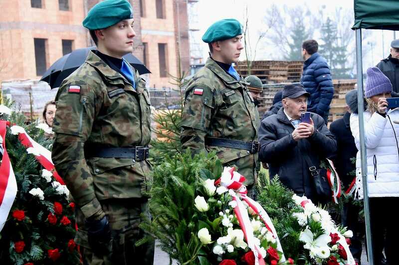 Wydarzenie zakończyło się złożeniem kwiatów pod pomnikiem – krzyżem poświęconym ofiarom tego miejsca. Wieniec złożyła również delegacja Oddziału IPN w Gdańsku. Piękną oprawę wydarzeniu zapewniła obecność wojska i służb mundurowych.