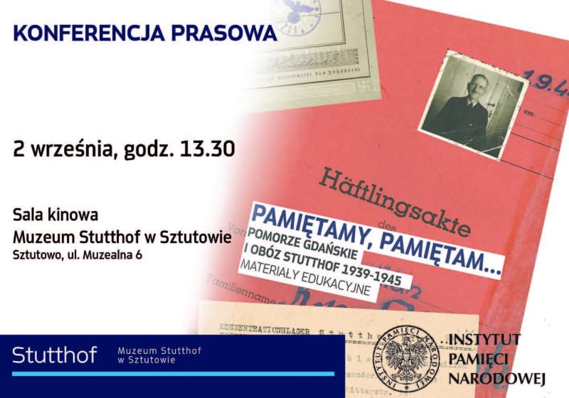 2 września br. o godz. 13.30 w Muzeum Stutthof w Sztutowie odbyła się konferencja prasowa poświęcona prezentacji wydawnictwa edukacyjnego „Pamiętamy, pamiętam… Pomorze Gdańskie i Obóz Stutthof 1939–1945. Materiały edukacyjne”, wydanego wspólnie przez Instytut Pamięci Narodowej oraz Muzeum Stutthof. W konferencji wziął udział prezes IPN dr Łukasz Kamiński.
