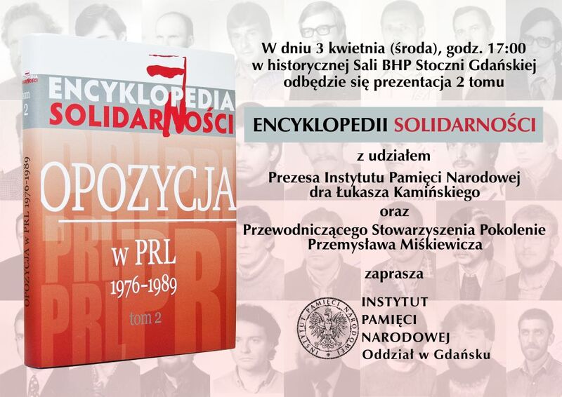 3 kwietnia br. w historycznej Sali BHP na terenie Stoczni Gdańskiej (ul. Doki 1) odbyło się spotkanie, podczas którego został zaprezentowany II tom „Encyklopedii Solidarności. Opozycja w PRL 1976–1989”.