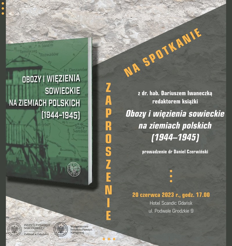 W dniu 20 czerwca br. (we wtorek) o godz. 17.00 w Hotelu Scandic w Gdańsku (ul. Podwale Grodzkie 9) odbędzie się promocja książki „Obozy i więzienia sowieckie na ziemiach polskich (1944–1945). Leksykon”.