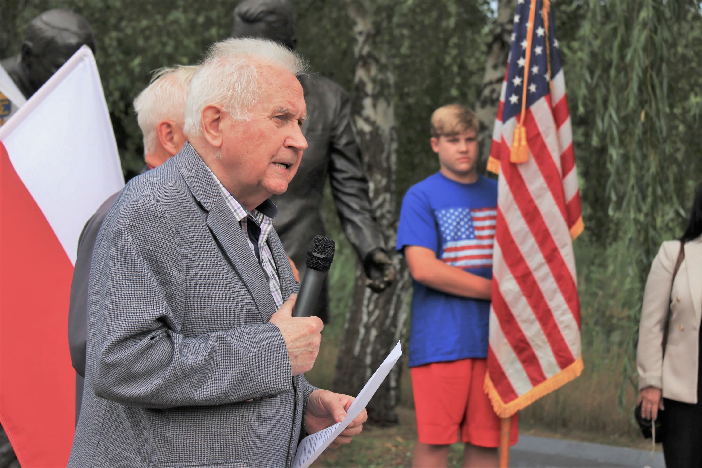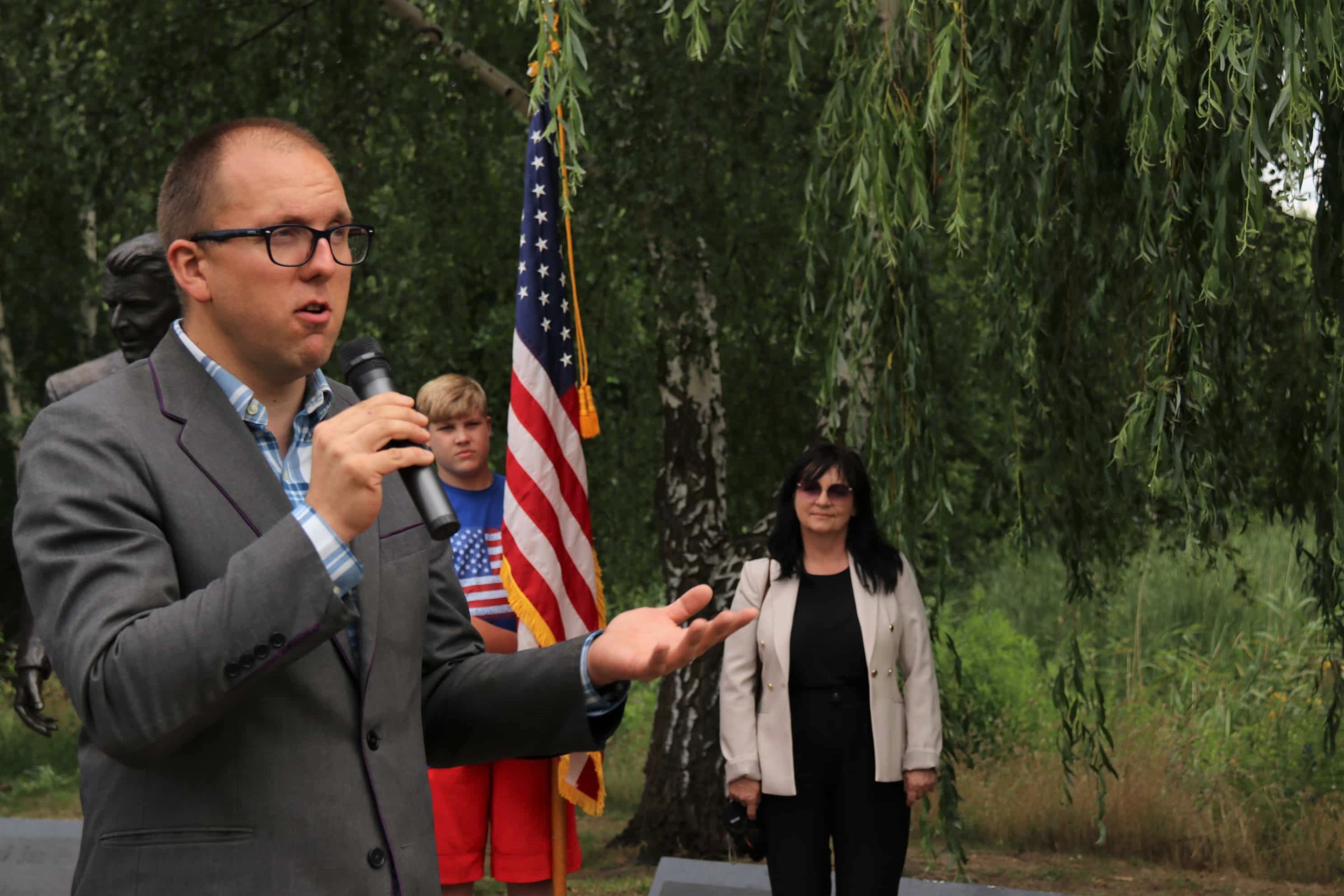 Okolicznościowe przemówienia wygłosili prezes Stowarzyszenia „Godność” Czesław Nowak i reprezentujący oddział IPN w Gdańsku  dr Daniel Czerwiński. W czasie wystąpień odwołali się do wielu historycznych związków przyjaźni polsko-amerykańskiej.