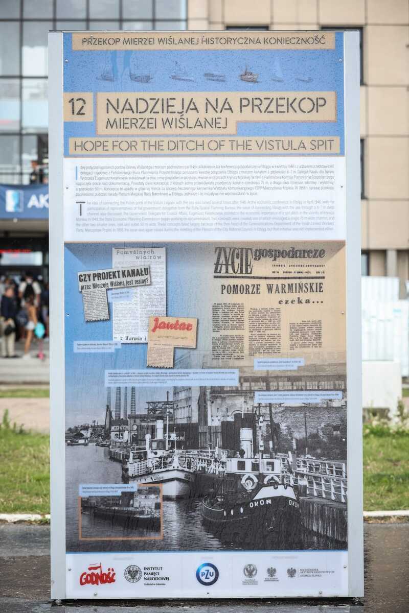 Ekspozycja powstała przy współpracy z Stowarszyniem Godność i prezentuje ona kolejne etapy idei i powstania Przekopu Mierzei Wiślanej, którego uroczyste otwarcie miało miejsce 17 września 2022 roku.