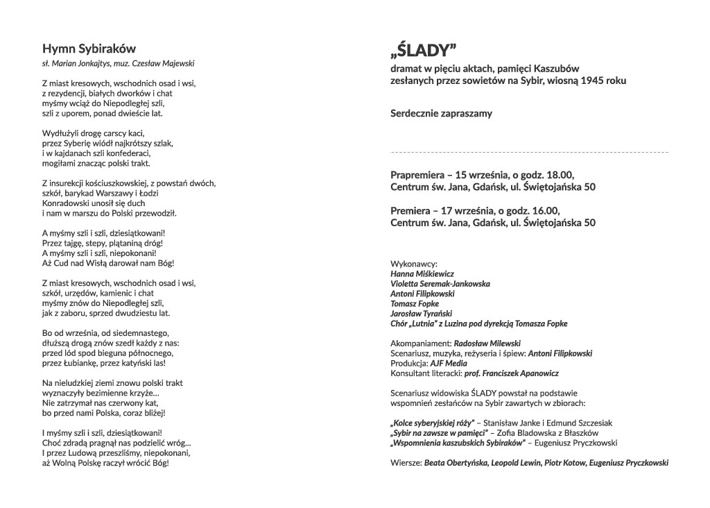 Prapremiera odbędzie się 15 września (w piątek) o godz. 18.00 w Centrum św. Jana w Gdańsku (ul. Świętojańska); premiera również w Centrum św. Jana 17 września (w niedzielę) o godz. 16.00.