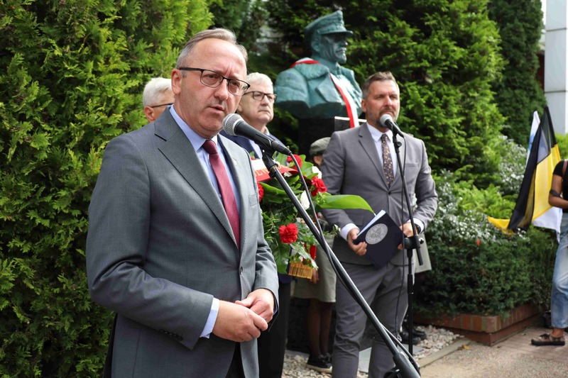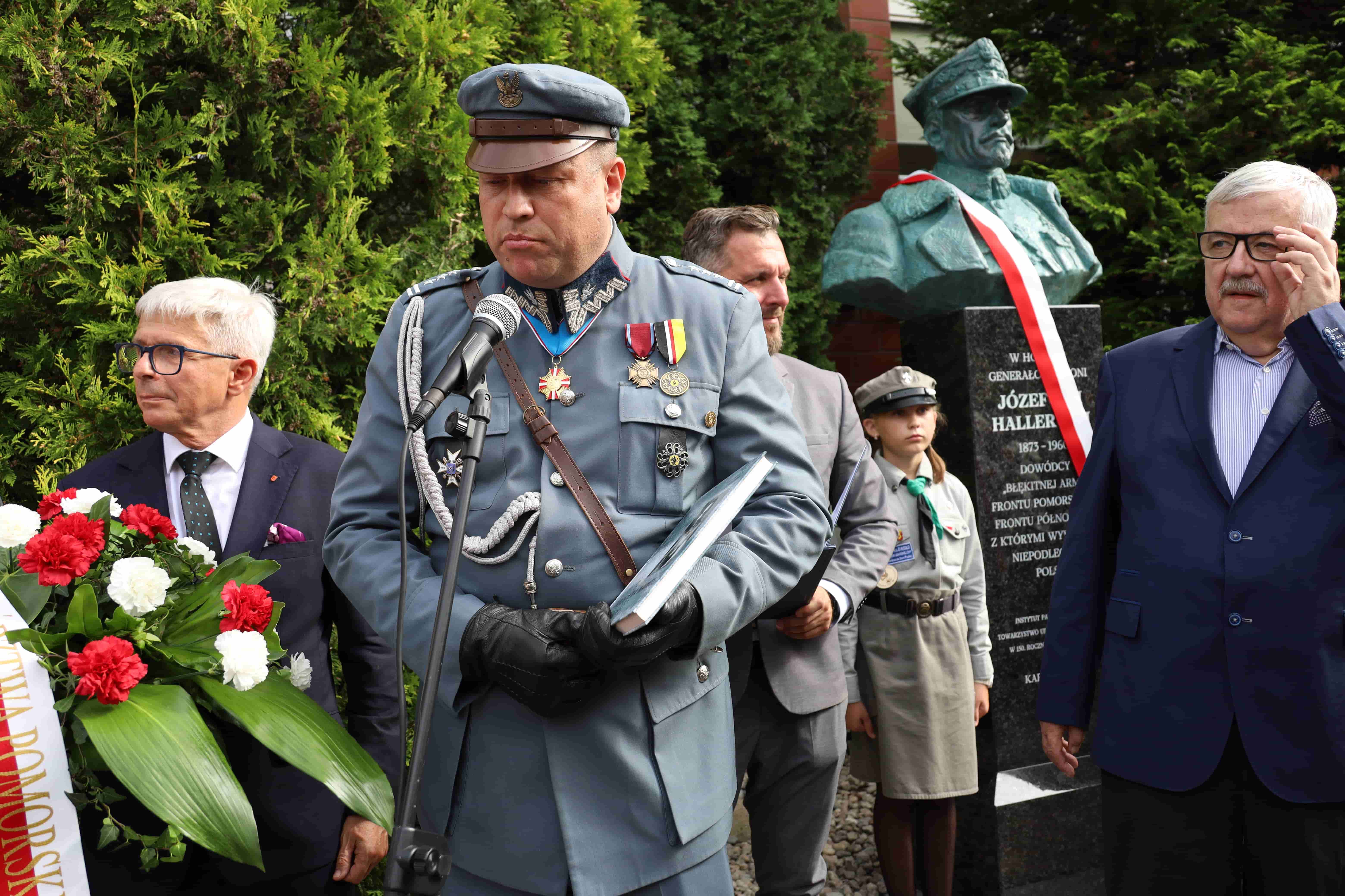 Najbardziej cieszy obecność dzieci i młodzieży. Super, że jesteście.[…]. 8 lutego 1920 roku tu do Kartuz wkroczyły Oddziały Armii gen. Hallera, które wyzwalały ziemię kaszubską i pomorską z ponad półtora wiekowej niewoli niemieckiej. Od 8 lutego 1920 roku można więc śmiało mówić o narodzinach legendy generała „Błękitnej Armii” tutaj na tym obszarze. [...]. Armia Frontu Pomorskiego, która przychodziła wypełnić postanowienia Traktatu Wersalskiego przejmowała obszary Pomorza i Kaszub, aby przyłączyć do wolnej i niepodległej Rzeczpospolitej […]. Rozpoczął się proces zespalania w jednym organizmie niepodległego państwa polskiego różnych części rozdartych przez zaborców. […]. Generał Haller nigdy z Kartuz nie wyjechał. Kaszub nigdy nie opuścił, bo przez cały okres II wojny światowej, okres zniewolenia komunistycznego, gen. Haller był w sercach i umysłach mieszkańców tych ziem […]. Mit, popularność gen. Hallera wychowała całe pokolenie dumnych Polaków, Kaszubów. To oni zasilili w okresie okupacji niemieckiej szeregi konspiracji antyokupacyjnej, antyniemieckiej- Towarzystwo Gryfa Pomorskiego, Armii Krajowej, Narodowych Sił Zbrojnych […]. Gen. Haller zawsze był z nami. Dzisiaj tylko wizualizujemy jego pobyt na tej ziem. […]. Niech żyje wolna niepodległa Polska!