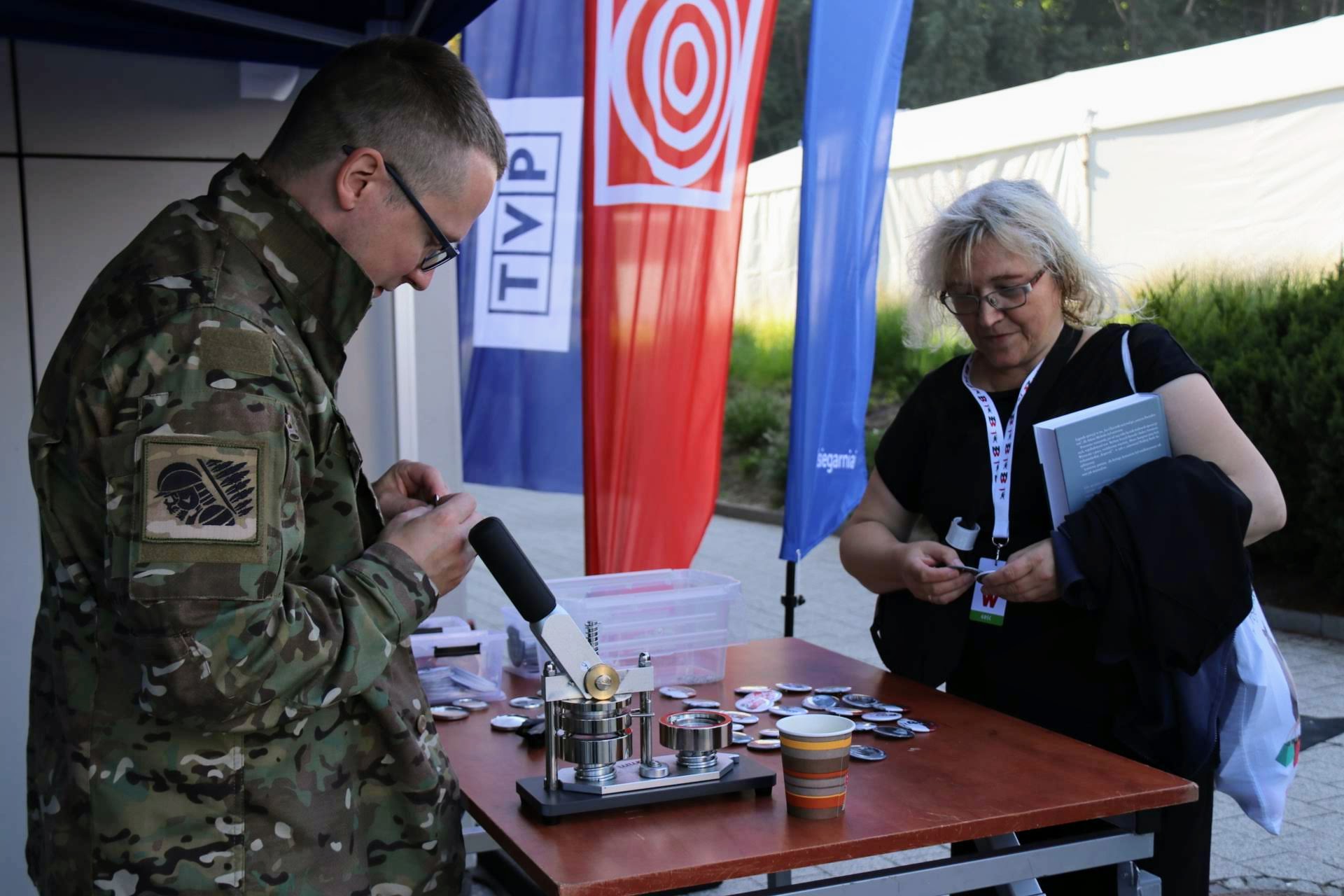 Tuż obok dostępne jest stoisko edukacyjne. Można na nim bezpłatnie otrzymać wartościową broszurkę historyczną, bądź pamiątkową wpinkę z symbolem m.in. Rodła bądź „kotwicę” Polski Walczącej.