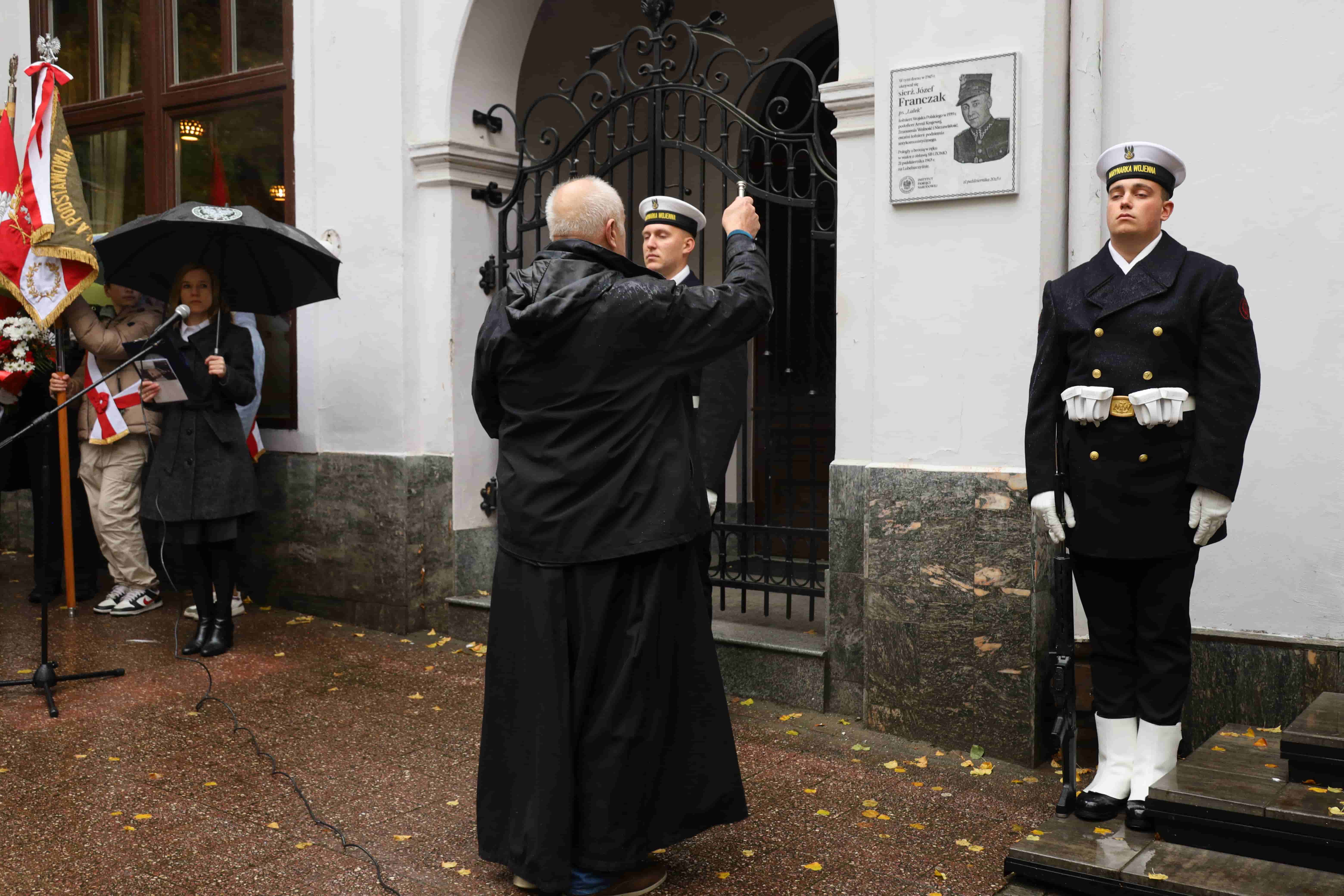 Odsłonięcie tablicy poprzedziła Msza święta w Kościele Garnizonowym pw. Św. Jerzego, sprawowana za duszę śp. Józefa Franczaka. W koncelebrze brali udział ks. płk prałat Jan Wołyniec – gospodarz miejsca, ojciec Marek Kiedrowicz OFMConv, kapelan Rajdu Katyńskiego oraz ks. komandor Straży Granicznej Andrzej Szpura. Głoszący homilię o. Marek Kiedrowicz podkreślił, że Ci, dla których po Bogu najważniejsza jest Ojczyzna, wiedzeni chrześcijańską miłością, a co za tym idzie gotowością do poświęcenia aż po ofiarę życia, choć po ludzku nierzadko wydają się przegrani, to z perspektywy wieczności odnoszą zwycięstwo. Zwycięstwem skazanych przez komunistów na śmierć i zapomnienie Żołnierzy Wyklętych, jest trwanie w pamięci kolejnych pokoleń i przechowywanie przez nie wartości, których bronili ludzie tacy jak sierż. „Lalek”.