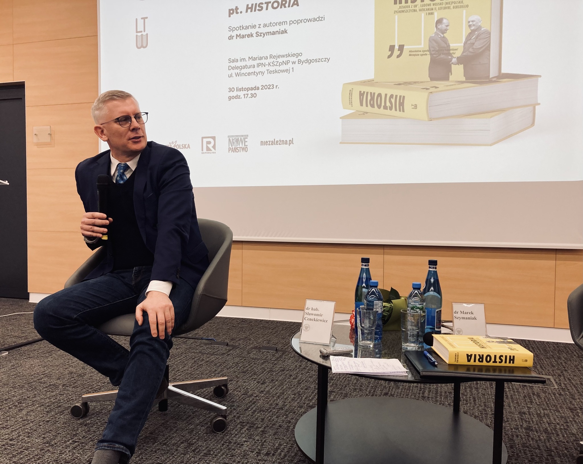 Wracam do tego co lubię najbardziej. Do spotkań i do pisania książek - powiedział prof. Cenckiewicz do wypełnionej po brzegi publiczności w sali.