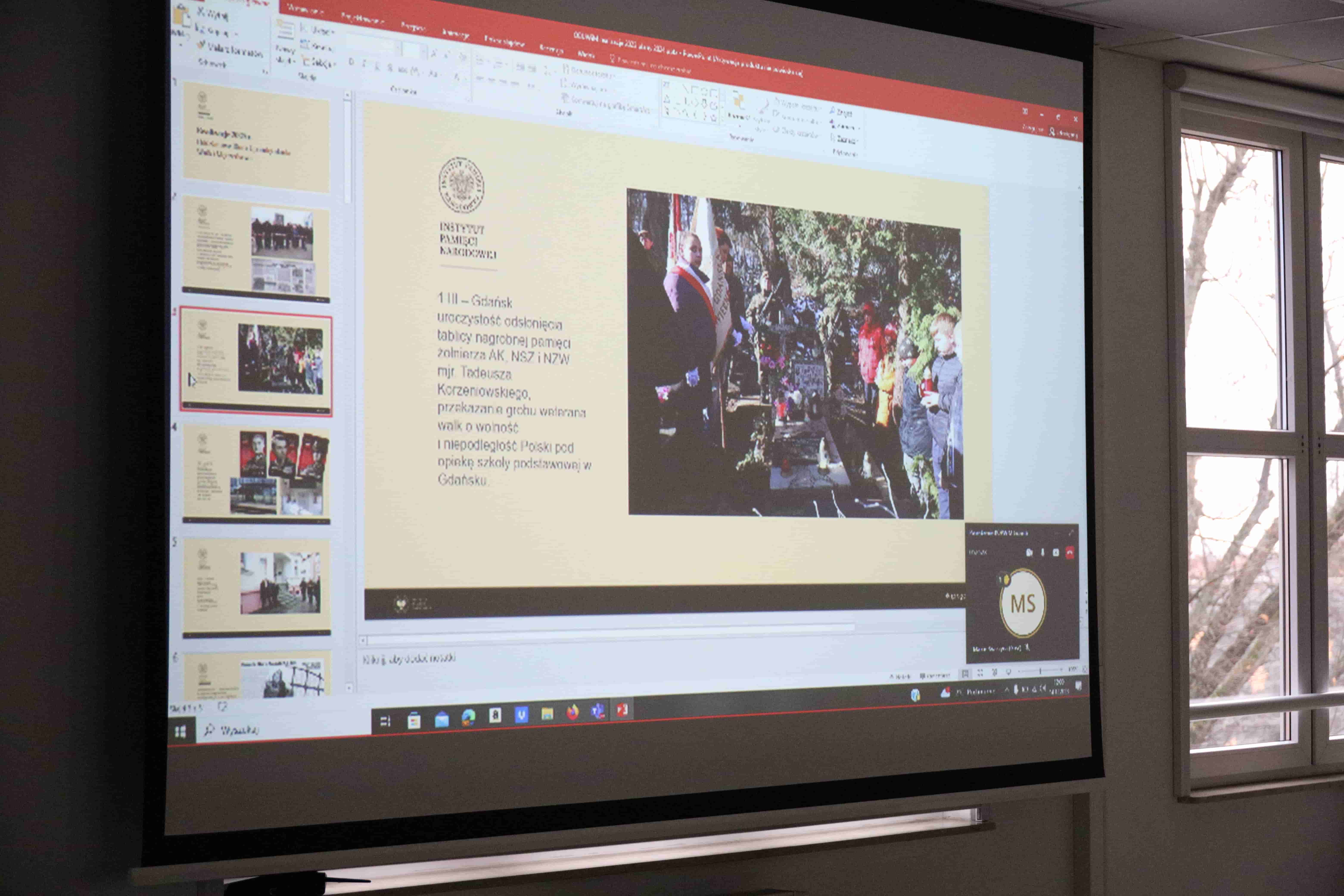 Na zakończenie spotkania Naczelnik OBUWiM, Katarzyna Lisiecka zaprezentowała zrealizowane upamiętnienia OBUWiM w 2023 r. Wśród nich wyremontowany nagrobek weterana mjr. Tadeusza Korzeniowskiego oraz powstańca styczniowego Antoniego Pikarskiego, wyremontowanie grobów powstańców styczniowych Kazimierza Porawskiego, Napoleona Malickiego i Hipolita Langiewicza, powstańców wielkopolskich Józefa Ludwiczaka i Józefa Hoffmana oraz działacza plebiscytowego Wacława Osińskiego, prezentacja w przestrzeni Trójmiasta 13 plakatów przedstawiających Żołnierzy Wyklętych, tablice pamięci Polskich Patriotów z Wolnego Miasta Gdańska: Bogumiły i Anastazego Wika- Czarnowskich, Komisarzy Generalnych RP, Ireny i Henryka Wieczorkiewiczów oraz Michała i Balbiny Bellwonów, popiersie bł. ks. Franciszka Rogaczewskiego w Nowym Mieście Lubawskim, popiersie gen. Józefa Hallera w Kartuzach, pomnik pamięci Heleny i Józefa Malinowskich uznanych w 1985 r. przez Yad Vashem za Sprawiedliwych wśród Narodów Świata w Leśnej Jani, tablica pamięci Rudolfa Lassa - wójta gminy Kościerzyna oraz Władysława Rogali zamordowanych 14 września 1939 r. przez żołnierzy niemieckich, upamiętnienie osób internowanych w wojskowym obozie w Czarnem, tablica na Areszcie Śledczym w Starogardzie Gdańskim odsłonięta w Narodowy Dzień Pamięci Ofiar Niemieckiej Zbrodni Pomorskiej 1939 r., tablica żołnierza wyklętego sierż. Józefa Franczaka „Lalka” w Sopocie, tablica pamiątkowa i edukacyjna na cmentarzu w Gdyni Redłowie upamiętniająca gdynian, ofiary masowej egzekucji Polaków w Piaśnicy oraz tablica upamiętniająca duszpasterza gdańskich portowców o. Dominika Norberta Kabattka w Kościele Morskim w Gdańsku.