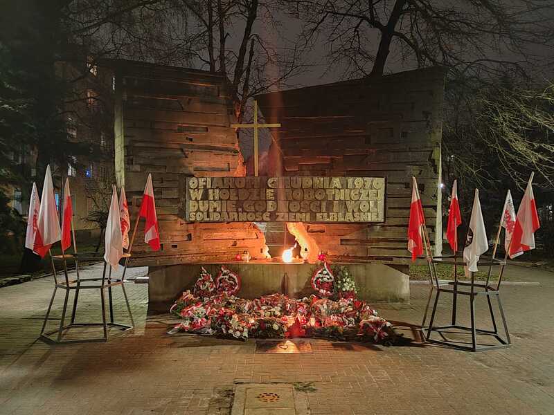 Władza bez legitymizacji społecznej może trwać tylko dzięki przemocy i terrorowi. [...] Solidarność od momentu powstania podjęła starania o godne upamiętnienie ofiar Grudnia 1970 roku. Efektem tego było odsłonięcie w grudniu 1980 roku pomników w Gdańsku i w Elblągu. Od tego czasu również w mrocznych i znaczonych krwawymi represjami czasach stanu wojennego, stale przypominaliśmy o ofiarach tamtych grudniowych masakr – zaznaczył.