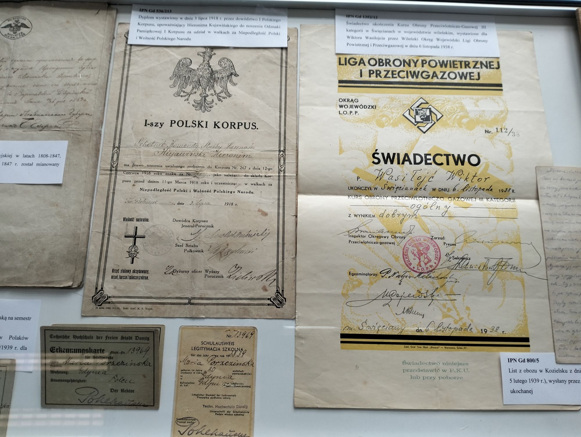 W trzech gablotach zostały zaprezentowane oryginalne pamiątki z lat 1853–1989, przekazane przez darczyńców do zasobu archiwalnego Oddziału IPN w Gdańsku w ramach projektu „Archiwum Pełne Pamięci” (m.in. świadectwa, dyplomy, dokumenty tożsamości, legitymacje, list wysłany z obozu w Kozielsku, przypinki o tematyce religijnej i solidarnościowej, znaczki pocztowe wydane przez ugrupowania opozycyjne, kartki żywnościowe, taśma filmowa, kaseta magnetofonowa). Wśród pamiątek znalazły się również Krzyż Komandorski z Gwiazdą Orderu Odrodzenia Polski, którym pośmiertnie został odznaczony żołnierz Armii Krajowej na Wileńszczyźnie Lucjan Minkiewicz oraz nota identyfikacyjna potwierdzająca odnalezienie szczątków Lucjana Minkiewicza na Cmentarzu Wojskowym Powązki w Warszawie.