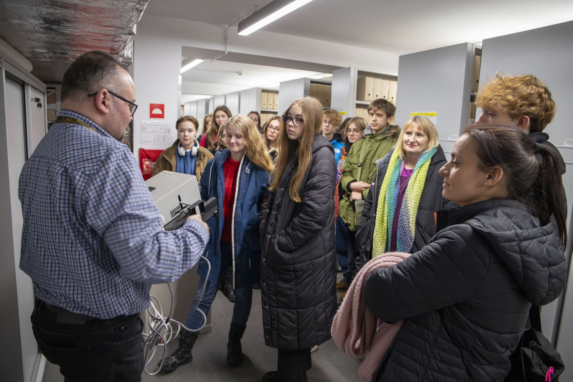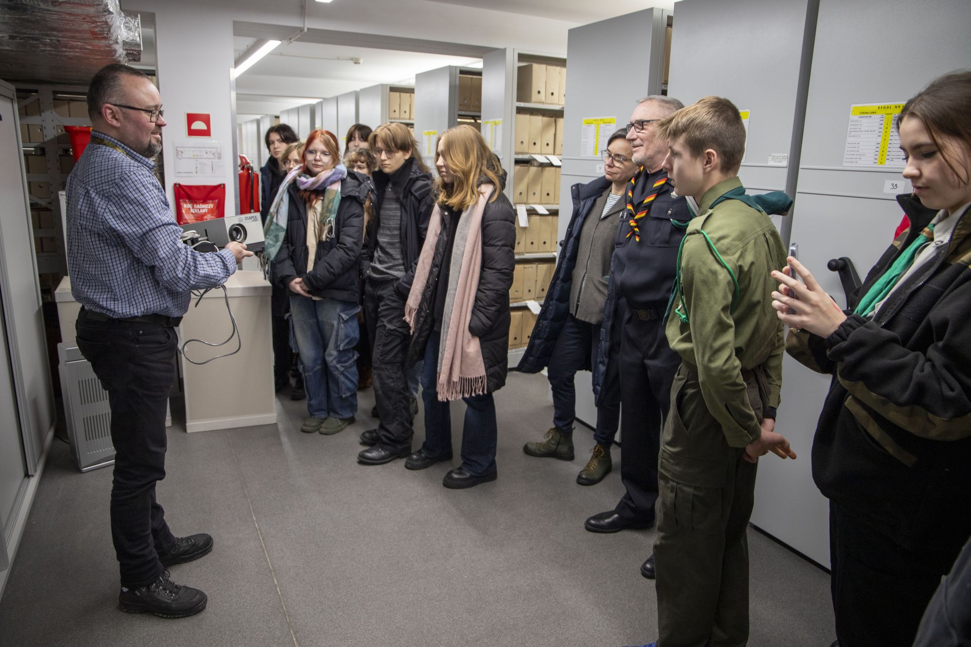 Na koniec uczestnicy spotkania zwiedzili magazyn archiwalny, gdzie poznali warunki przechowywania materiałów zgromadzonych w zasobie Oddziału IPN w Gdańsku.