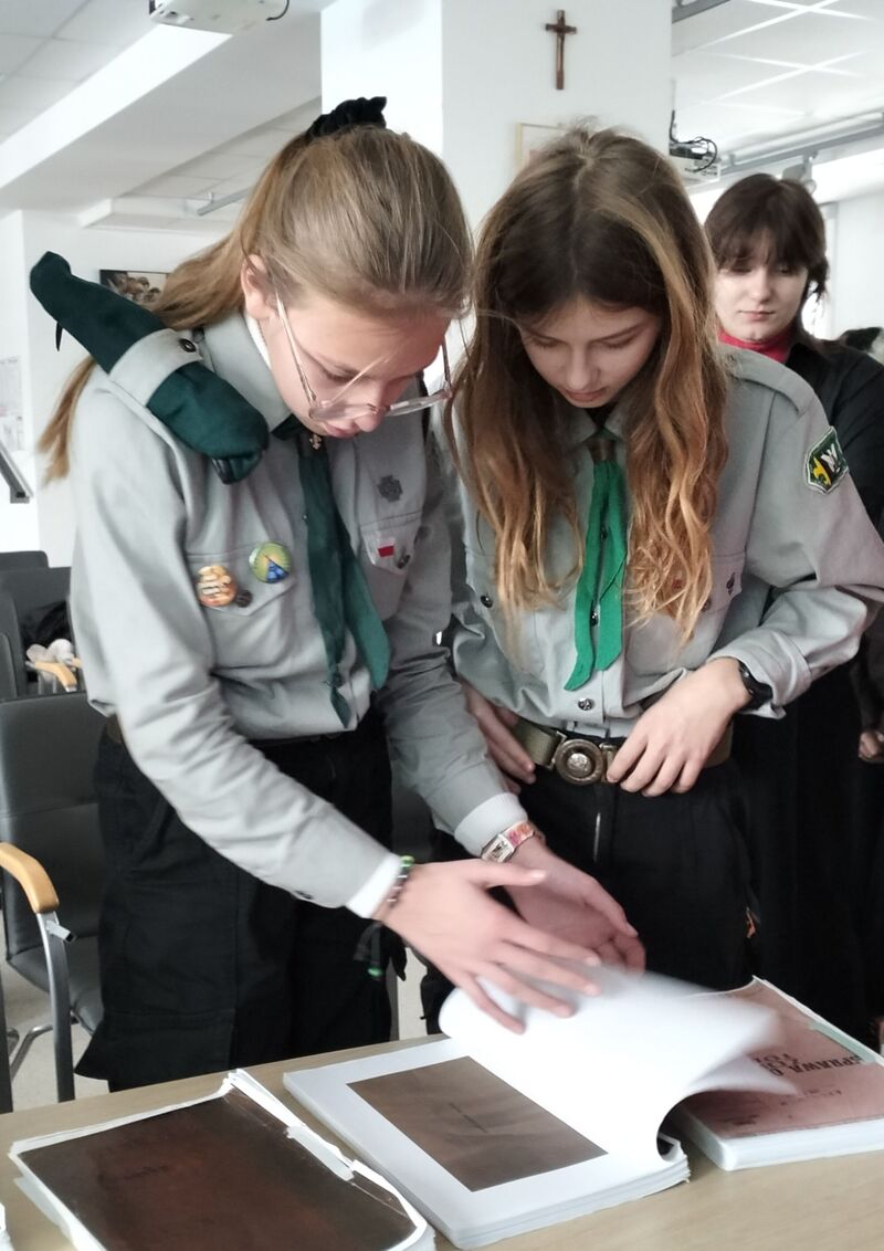 Pracownik Oddziałowego Archiwum Przemysław Namsołek poprowadził lekcję archiwalną połączoną z prezentacją multimedialną, podczas której opowiedział o zadaniach spoczywających na archiwistach i scharakteryzował poszczególne rodzaje dokumentów, zgromadzonych w zasobie Oddziału IPN w Gdańsku. Goście obejrzeli kopie wybranych materiałów z zasobu archiwalnego IPN w Gdańsku (m.in. akta operacyjne, akta sądowe, akta funkcjonariusza Służby Bezpieczeństwa, akta tajnego współpracownika, akta paszportowe).