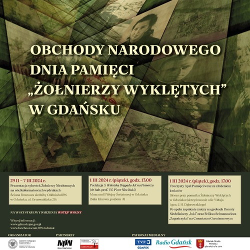 – To bardzo ważne, aby roku 1945 nie utożsamiać z momentem, w którym Polska, pomimo zakończenia II wojny światowej, odzyskała niepodległość. Tak się nie stało i tysiące żołnierzy, którzy w okresie II wojny światowej w strukturach Polskiego Państwa Podziemnego walczyli o wolność naszej Ojczyzny, ci żołnierze, po 1944 roku tę walkę o niepodległość naszej Ojczyzny kontynuowali. Byli wśród nich również Ci, których dzisiaj na budynku siedziby Instytutu Pamięci Narodowej Oddziału w Gdańsku upamiętniamy w sposób szczególny, poprzez wywieszone banery, które mieszkańcom Gdańska mają przypominać o ważnych na Pomorzu i ważnych dla całej Polski postaciach – mówił dr Marek Szymaniak, wymieniając następnie nazwiska słynnych partyzantów: Zygmunta Szendzielarza ps. „Łupaszka”, Danuta Siedzikówna ps. „Inka”, rtm. Witold Pilecki, Zdzisława Badochę ps. „Żelazny” i Henryka Wieliczko „Lufę”.