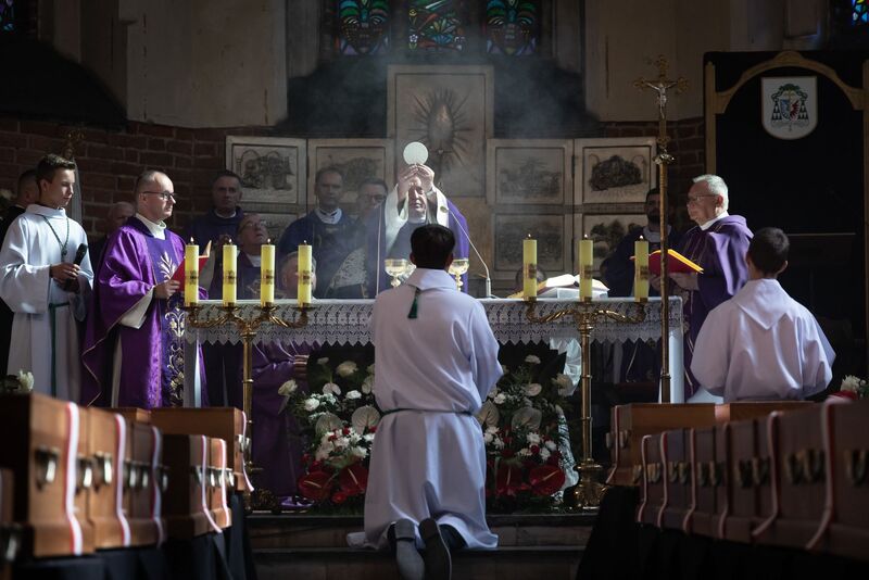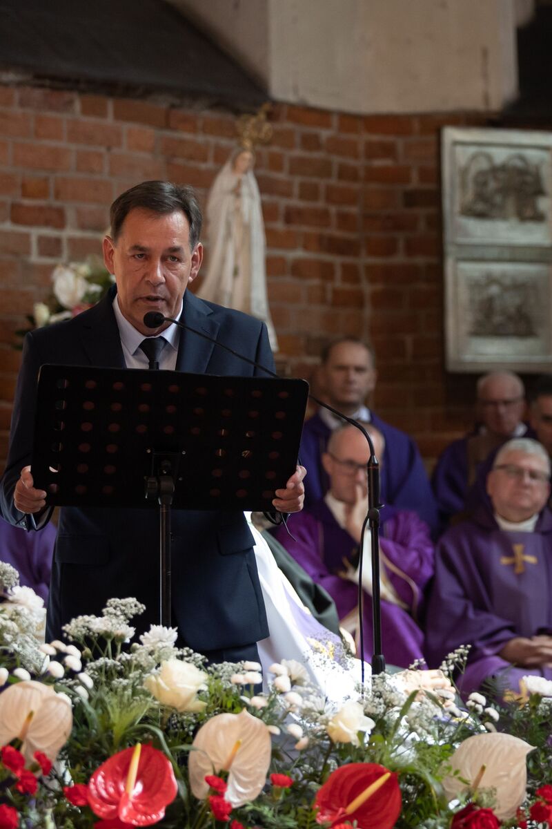 Mszy świętej przewodniczył biskup pelpliński Ryszard Kasyna. W uroczystościach pogrzebowych uczestniczyli m.in. dyrektor Biura Prezesa IPN Jarosław Dębowski, prokurator Andrzej Pozorski, dyrektor gdańskiego oddziału IPN dr Marek Szymaniak oraz prezes IPN dr Karol Nawrocki, który powiedział, że: