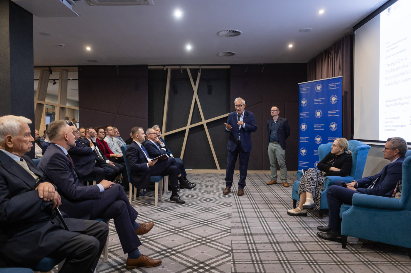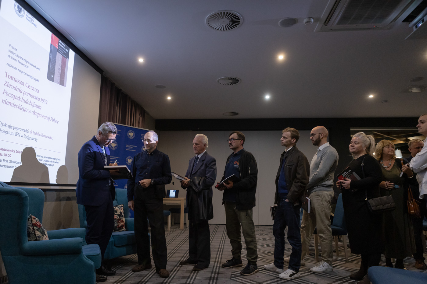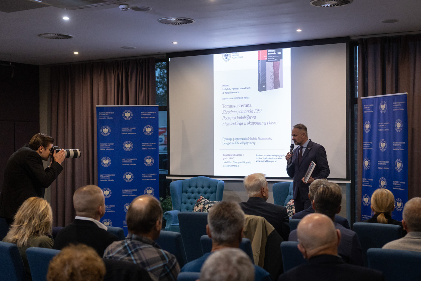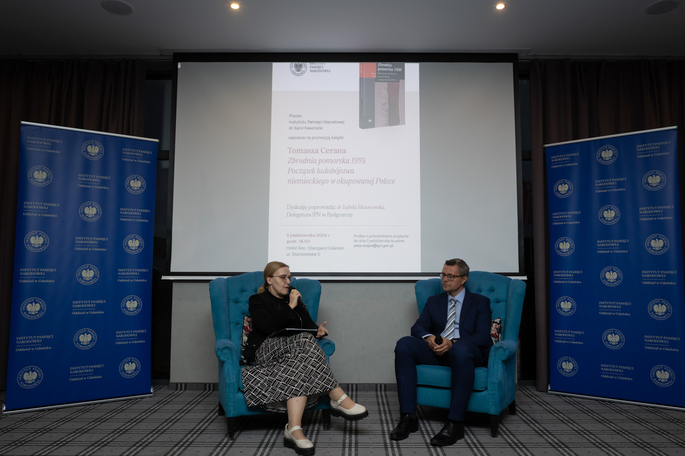 Dr Tomasz Ceran, pracownik bydgoskiej delegatury IPN, w rozmowie z dr Izabelą Mazanowską, przedstawił tragiczne wydarzenia z 1939 roku, kiedy to na Pomorzu doszło do masowych egzekucji ludności polskiej, co uznaje się za jedne z pierwszych aktów niemieckiego ludobójstwa w trakcie wojny. Autor podzielił się z uczestnikami swoimi badaniami, odkryciami i refleksjami nad tym okresem.