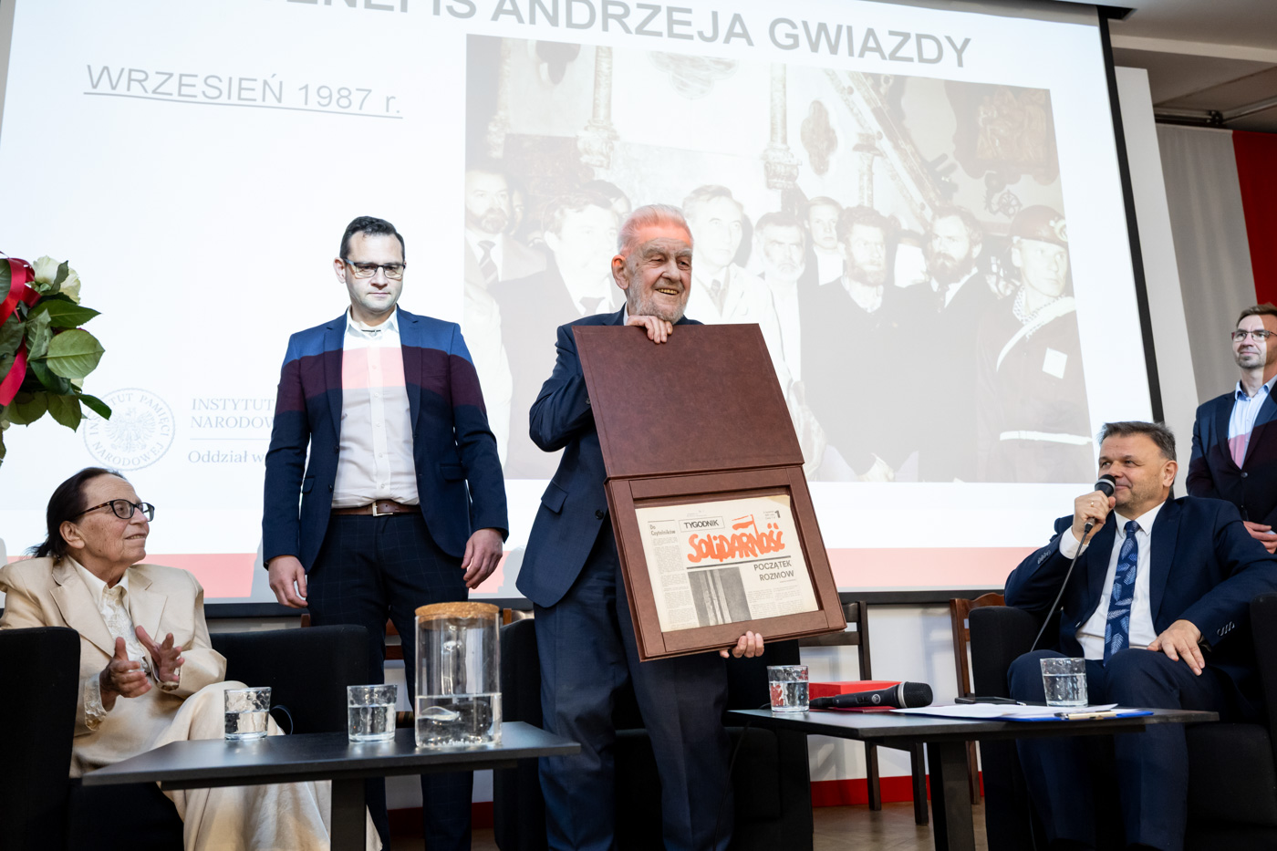 Uroczystość zorganizowano z okazji 90. urodzin Andrzeja Gwiazdy. W jej trakcie nie zabrakło wzruszeń, wspomnień oraz refleksji nad życiem i działalnością benefisanta. Szczególnym momentem była laudacja wygłoszona przez Dyrektora Instytutu Pamięci Narodowej w Gdańsku, dr. Marka Szymaniaka, który przybliżył bogaty życiorys jubilata i przekazał mu symboliczny bukiet kwiatów.