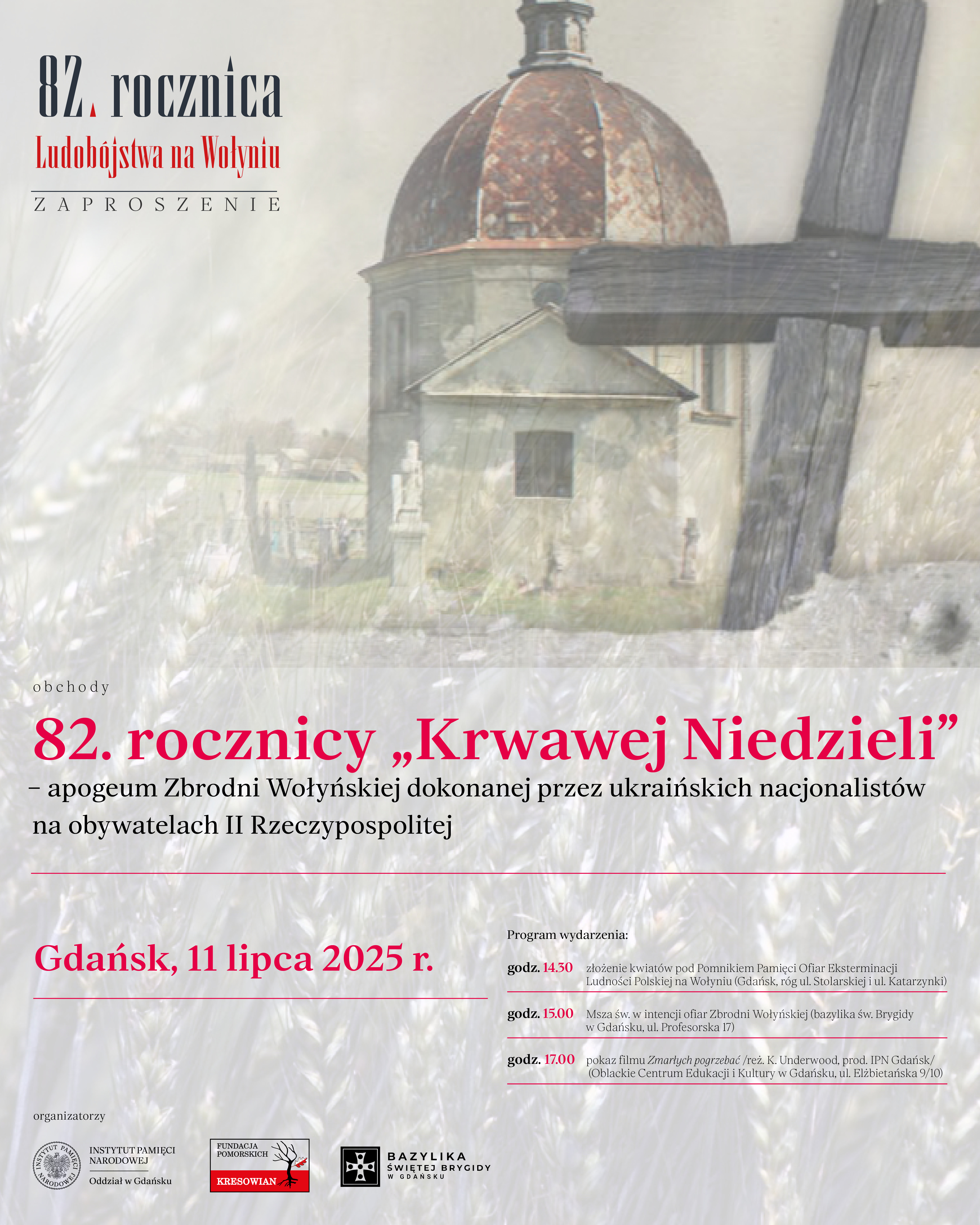 Serdecznie zapraszamy wszystkich, którym bliska jest pamięć o ofiarach ukraińskiego ludobójstwa na Wołyniu. Niech wspólna modlitwa i obecność będą świadectwem naszej pamięci, solidarności i troski o prawdę historyczną.