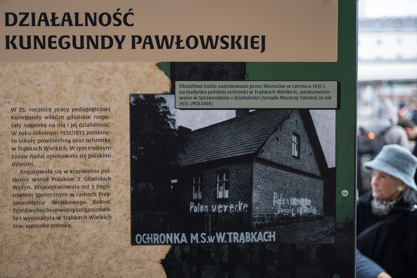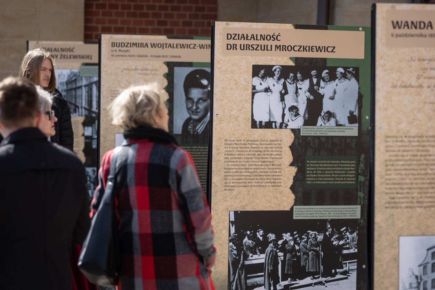 Wśród zaprezentowanych postaci znalazły się m.in.: Hildegarda Bigocka, działaczka harcerska i sportsmenka związana z KS Gedania, kurierka Związku Walki Zbrojnej zamordowana w KL Auschwitz; Maria Chodakowska (Filarska), zaangażowana w działalność konspiracyjną i organizację przerzutów kurierskich; Edyta Czoskówna, nauczycielka i działaczka społeczna zamordowana przez Niemców w 1939 r.; Maria Flisykowska-Piasecka, pracownica Poczty Polskiej w Gdańsku i aktywna działaczka środowisk polskich; Antonina Gdaniec, prowadząca polski sklep i zaangażowana w działalność organizacji polskich; Wanda (Jadwiga) Marlewska, działaczka społeczna i niepodległościowa; Urszula Mroczkiewicz, lekarka pediatra zaangażowana w działalność społeczną i medyczną; Kunegunda Pawłowska, nauczycielka zamordowana w obozie Bergen-Belsen; Budzimira Wojtalewicz-Winke, żołnierz Armii Krajowej i uczestniczka powstania warszawskiego; oraz Helena Żelewska, nauczycielka i inicjatorka działań na rzecz polskiego szkolnictwa w Gdańsku.