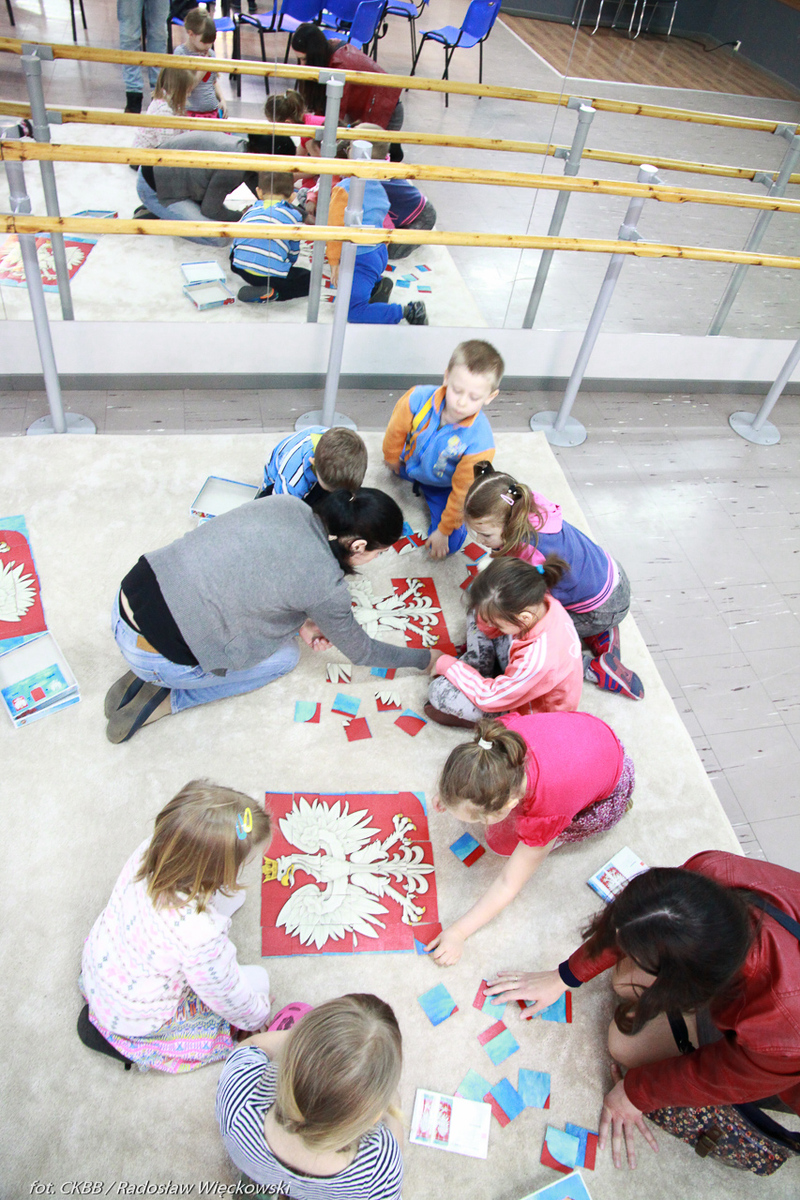 | Description | 11, 18 i 24 kwietnia br. na „Przystanku Historia”, działającym w „Centrum Kultury Browar B” we Włocławku, dr Kamila Churska-Wołoszczak, dr Izabela Mazanowska i dr Katarzyna Maniewska z Delegatury IPN w Bydgoszczy przeprowadziły cykl 11 zajęć pt. „Polak Mały. Polskie symbole narodowe”. W zajęciach, podczas których dzieci poznawały historię polskiego godła i hymnu oraz symbolikę flagi narodowej, uczestniczyły grupy przedszkolaków oraz uczniowie klas pierwszych z Włocławka. Fot. Centrum Kultury Browar B we Włocławku |