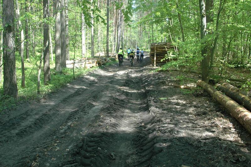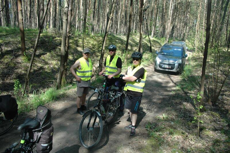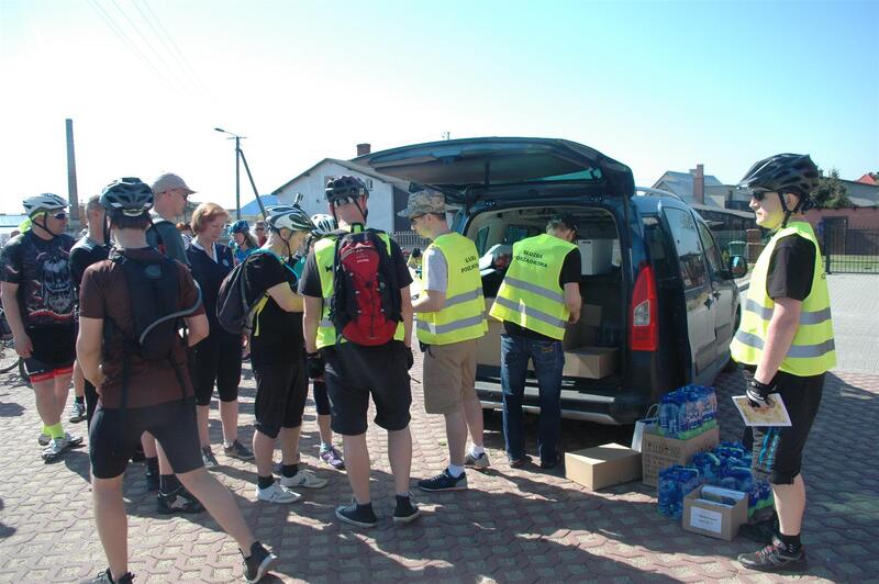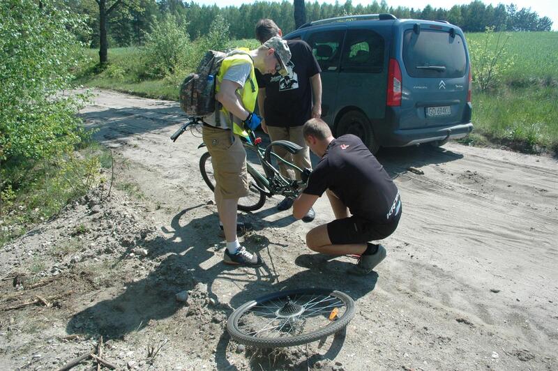 Nad bezpieczeństwem przejazdu czuwały dwa samochody techniczne. W jednym z nim był mechanik, który na bieżąco usuwał awarie rowerów strudzonych niełatwymi leśnym drogami.