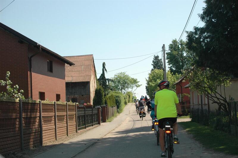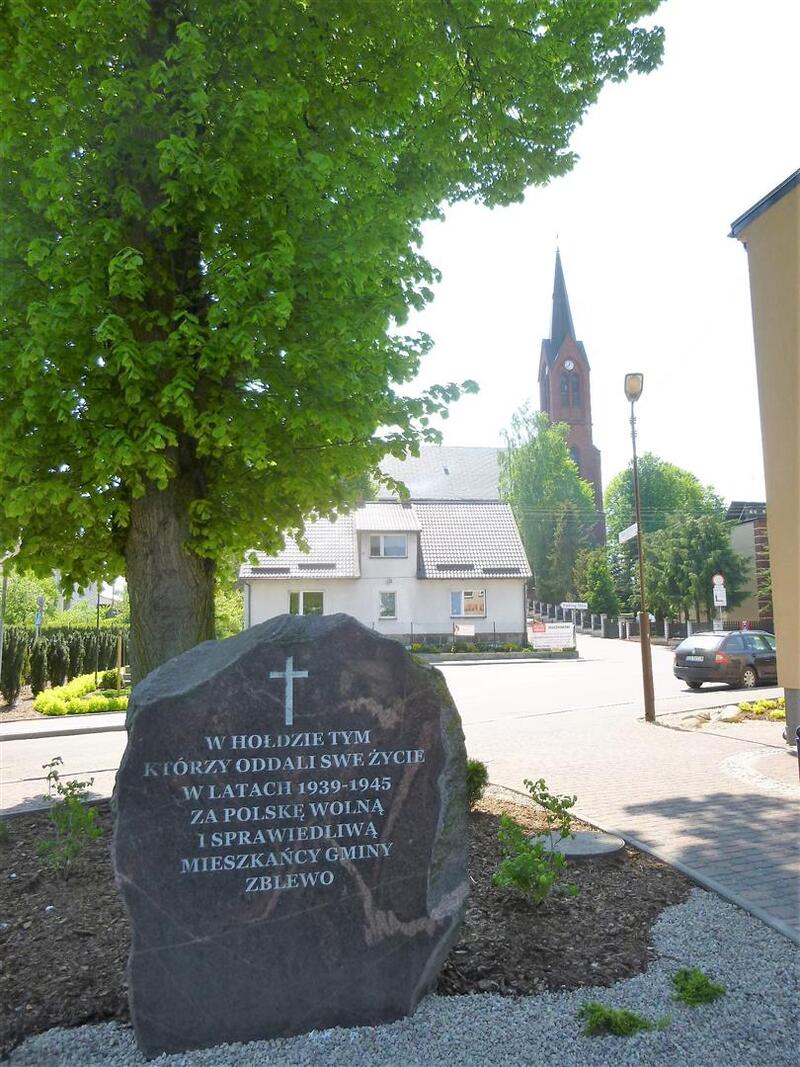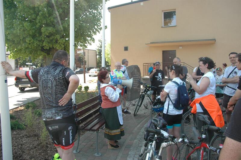 Po przejechaniu około połowy z planowanej, 40 kilometrowej trasy, dotarliśmy do większej miejscowości – Zblewa. Zaplanowaliśmy tutaj dłuższy postój i regenerację sił. Dzięki pomocy lokalnego przewodnika dowiedzieliśmy się kilka historycznych faktów o miejscowości. W Zblewie znajduje się m. in. obelisk upamiętniający mieszkańców zamordowanych w latach II wojny światowej oraz figura Matki Bożej upamiętniająca mieszkańców Kociewia, którzy zginęli w czasie I wojny światowej i wojny polsko-bolszewickiej.