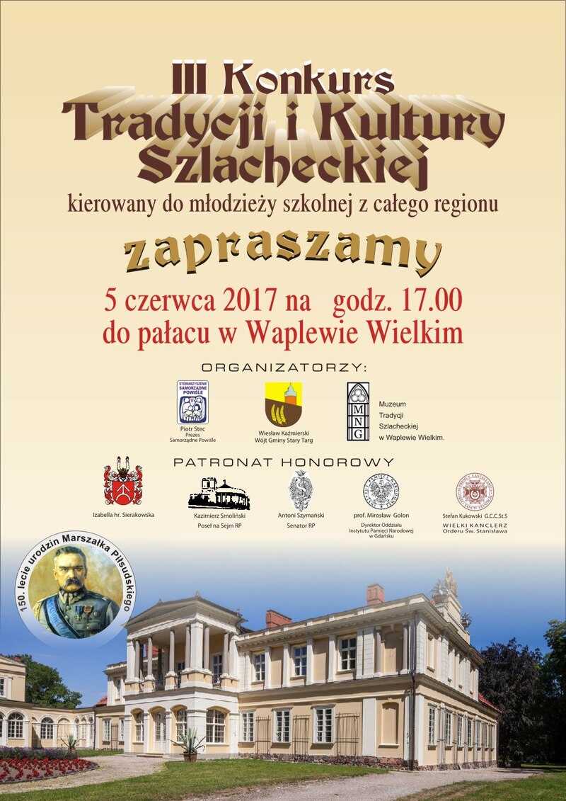 Organizatorami konkursu byli: Piotr Stec, Prezes „Samorządnego Powiśla”; Wiesław Kaźmierski, Wójt Gminy Stary Targ; Muzeum Tradycji Szlacheckiej w Waplewie Wielkim. Patroni Honorowi: Izabella hr. Sierakowska; Kazimierz Smoliński, Poseł na Sejm RP; Antoni Szymański, Senator RP; prof. Mirosław Golon, Dyrektor Oddziału IPN w Gdańsku; Stefan Kukowski, G.C.C.St.S, Wielki Kanclerz Orderu Św. Stanisława.