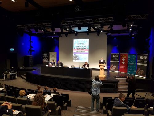 Dr hab. Filip Musiał mówił o założeniach dekomunizacji. Zaznaczył, że potrzebny jest symboliczny fundament, do którego powinniśmy się odwoływać, a jest nim nasza spuścizna niepodległościowa. Natomiast sowiecka spuścizna totalitarna pozostała po PRL „infekuje” nasz organizm państwowy.