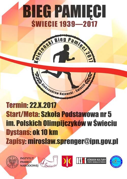 Ciekawy program akcji przygotowała również nasza Delegatura w Bydgoszczy. W tym roku jej bohaterem na terenie województwa kujawsko-pomorskiego był Józef Bednarz, jeden z pierwszych polskich psychiatrów zamordowanych przez Niemców w 1939 roku. W ramach akcji odbył się m.in. „Koleżeński Bieg Pamięci Świecie 1939–2017”, nad którym patronat honorowy objął Burmistrz Świecia Tadeusz Pogoda.