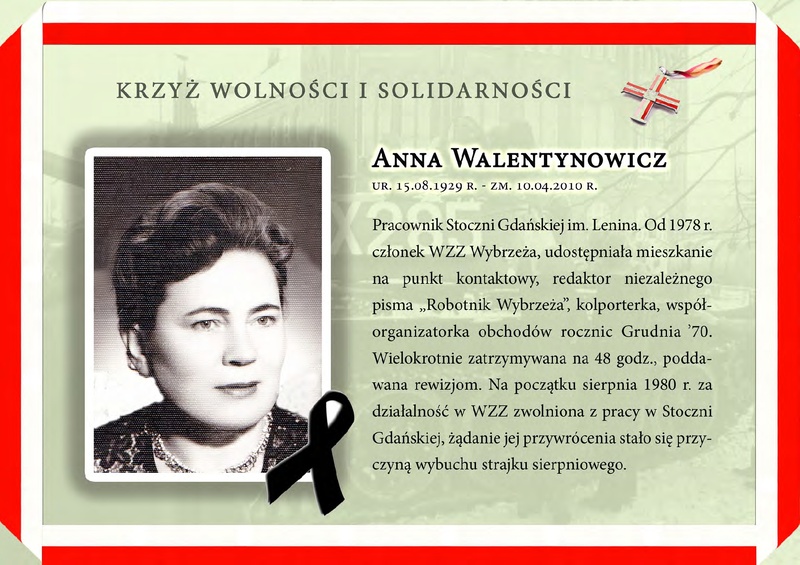 - Anna Walentynowicz (odznaczenie odbiera syn Janusz Walentynowicz)