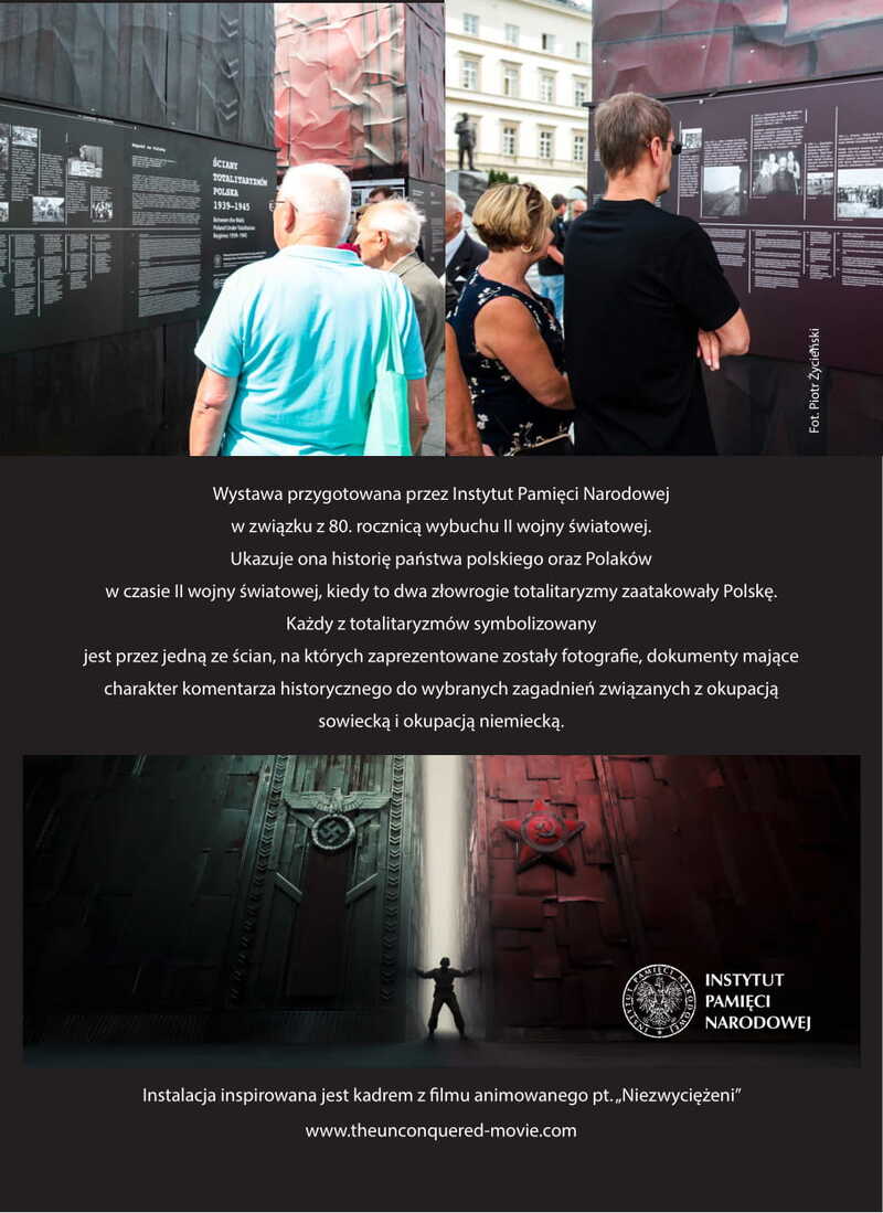 Ekspozycja, którą narodowym patronatem objął Prezydent Rzeczypospolitej Polskiej Andrzej Duda, ma formę instalacji inspirowanej ścianami z filmu „Niezwyciężeni” – animowanej produkcji IPN docenionej na świecie za nieszablonowe podejście do polskiej historii.