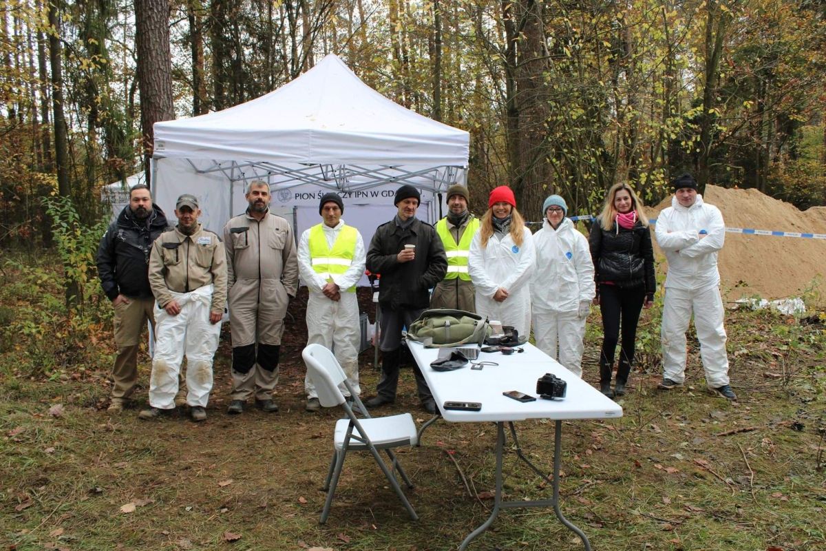 Naczelnik gdańskiego pionu śledczego IPN wraz z grupą biegłych i specjalistów odnaleźli szczątki kostne co najmniej 50 osób, prochy ludzkie kilkuset osób, ćwierć tysiąca artefaktów.