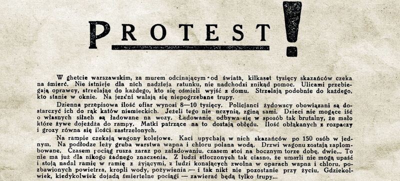 Odezwa „Protest!” została wydana nakładem konspiracyjnej drukarni w 5 tys. egzemplarzy. Miała formę jednostronicowej ulotki-plakatu. Latem 1942 roku, w czasie wielkiej akcji likwidacyjnej w warszawskim getcie, w ramach której Niemcy wywieźli niemal 300 tys. Żydów do obozu zagłady w Treblince, była nielegalnie kolportowana na ulicach stolicy.